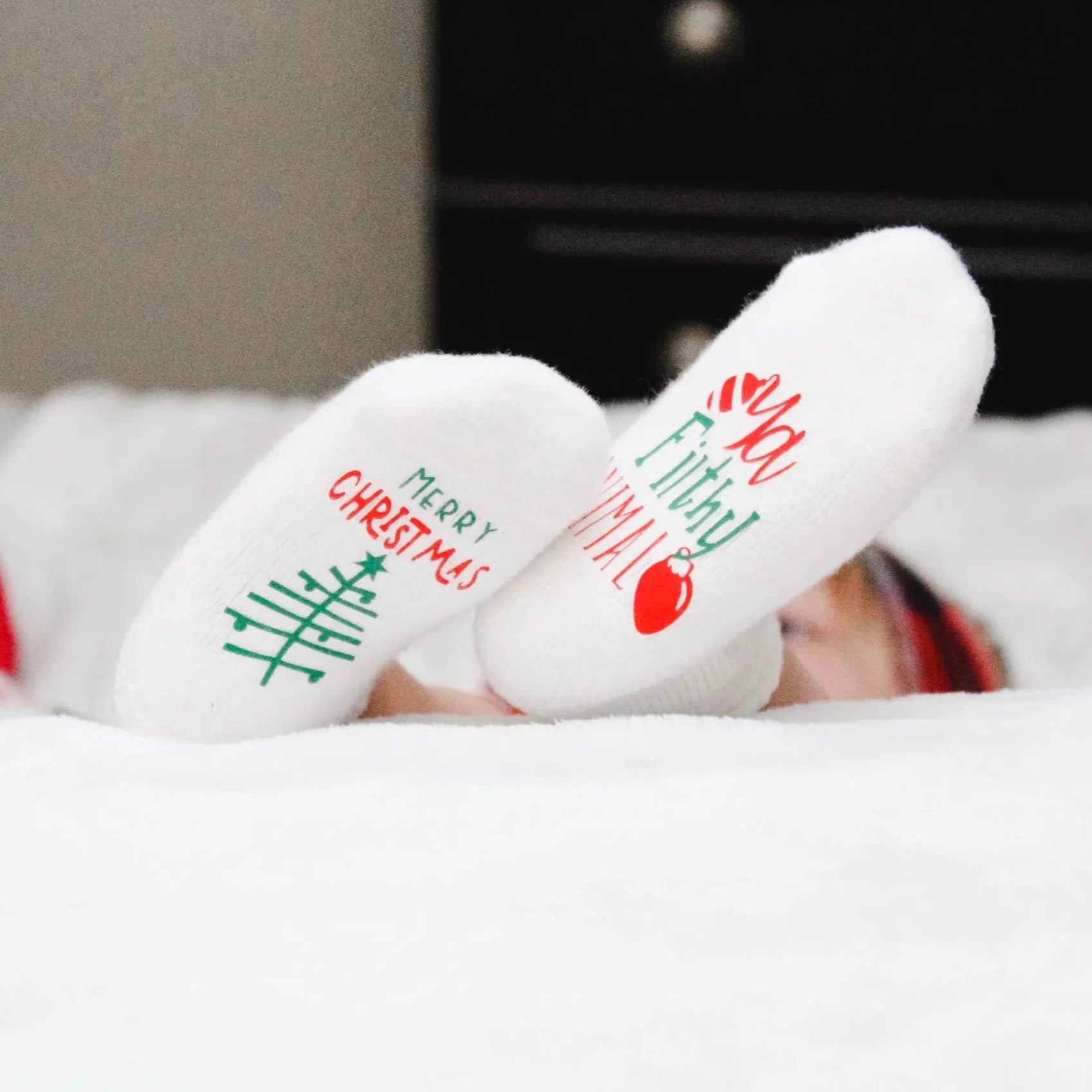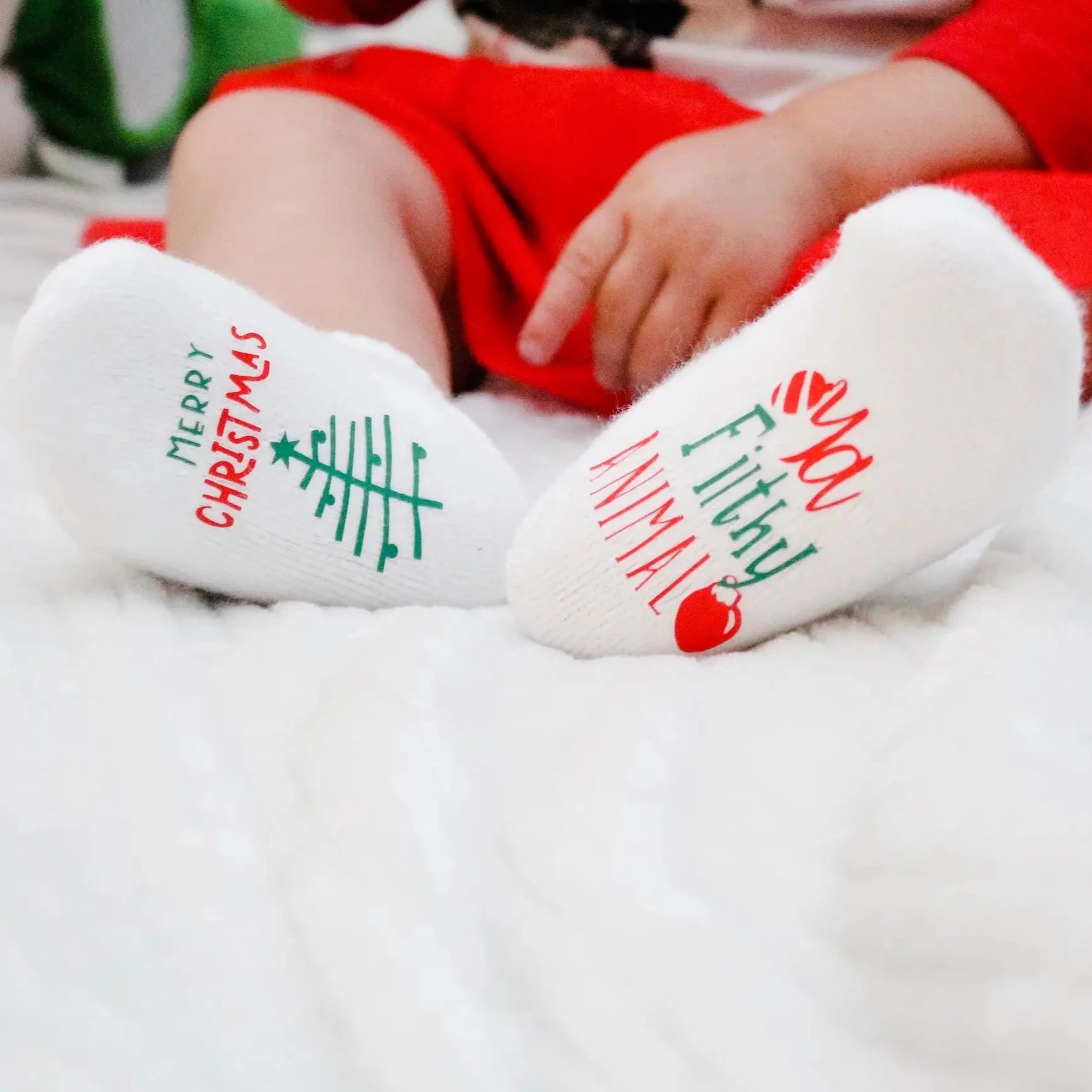 Merry Christmas Ya Filthy Animal Baby Socks by Dorothy's Reason