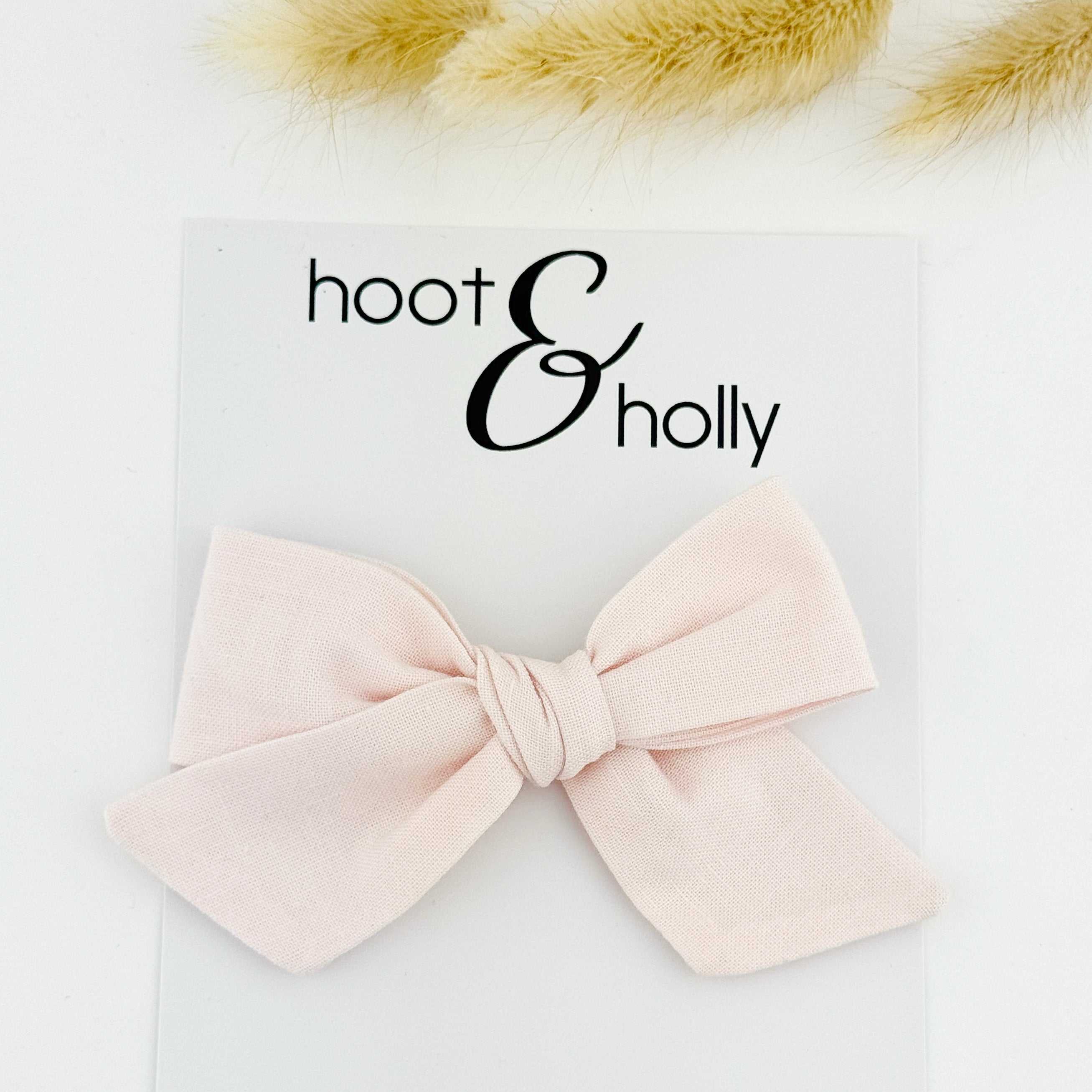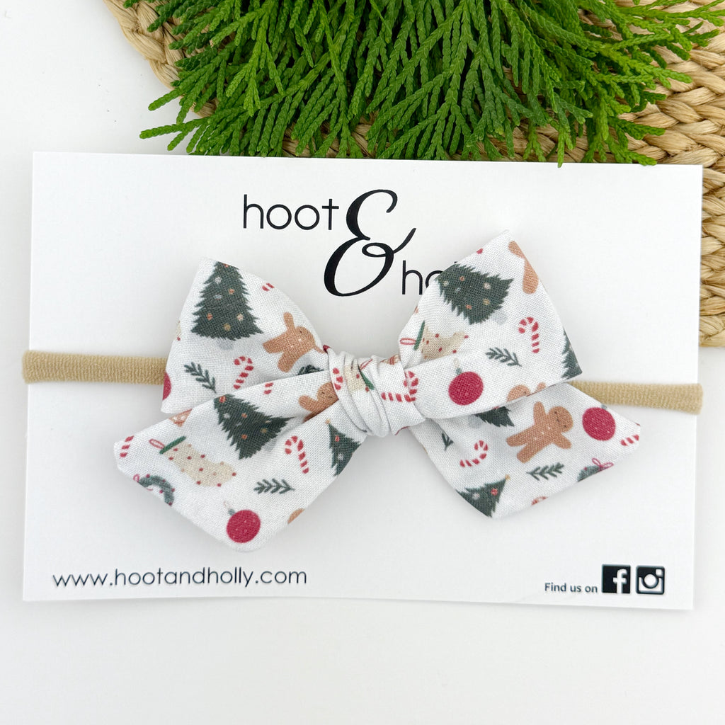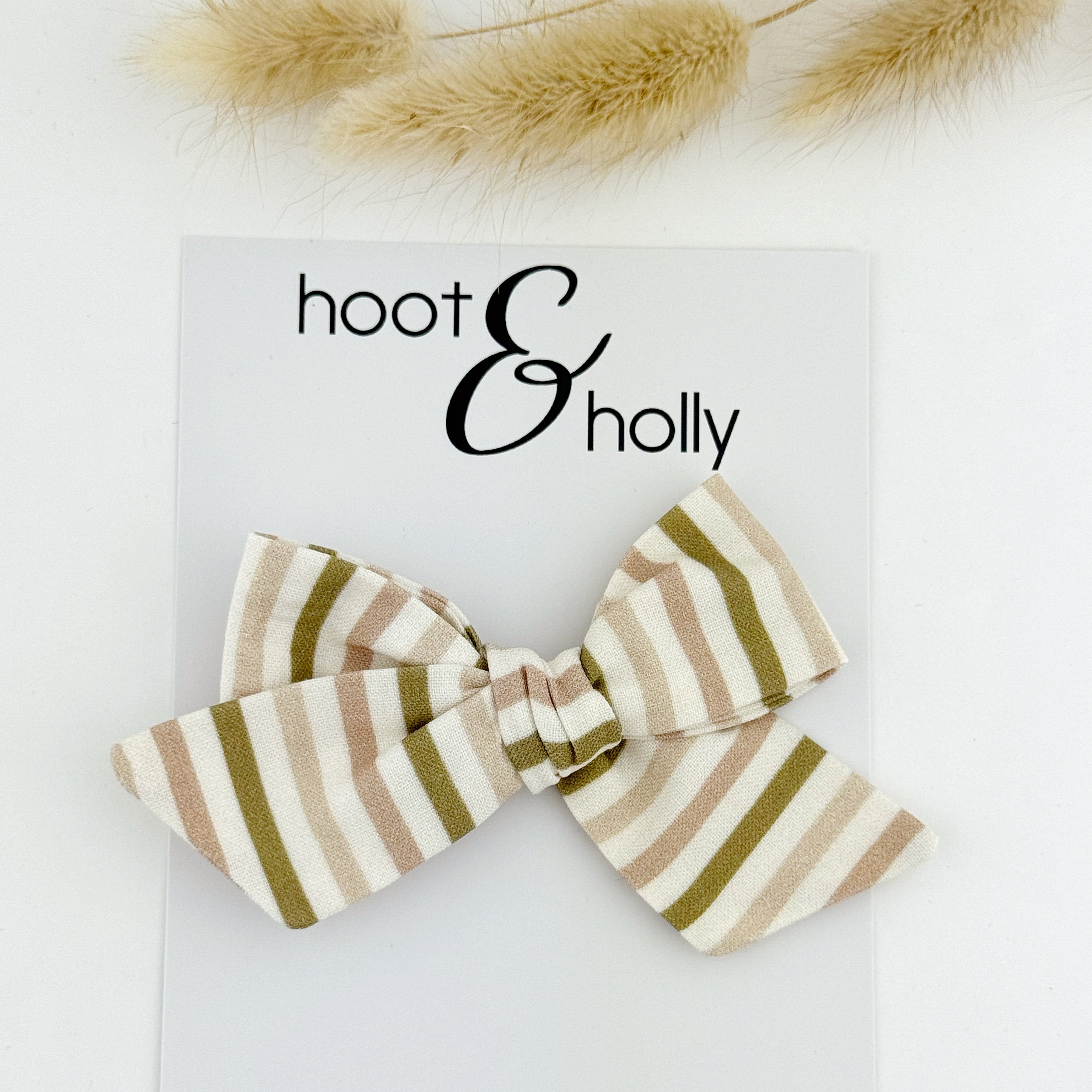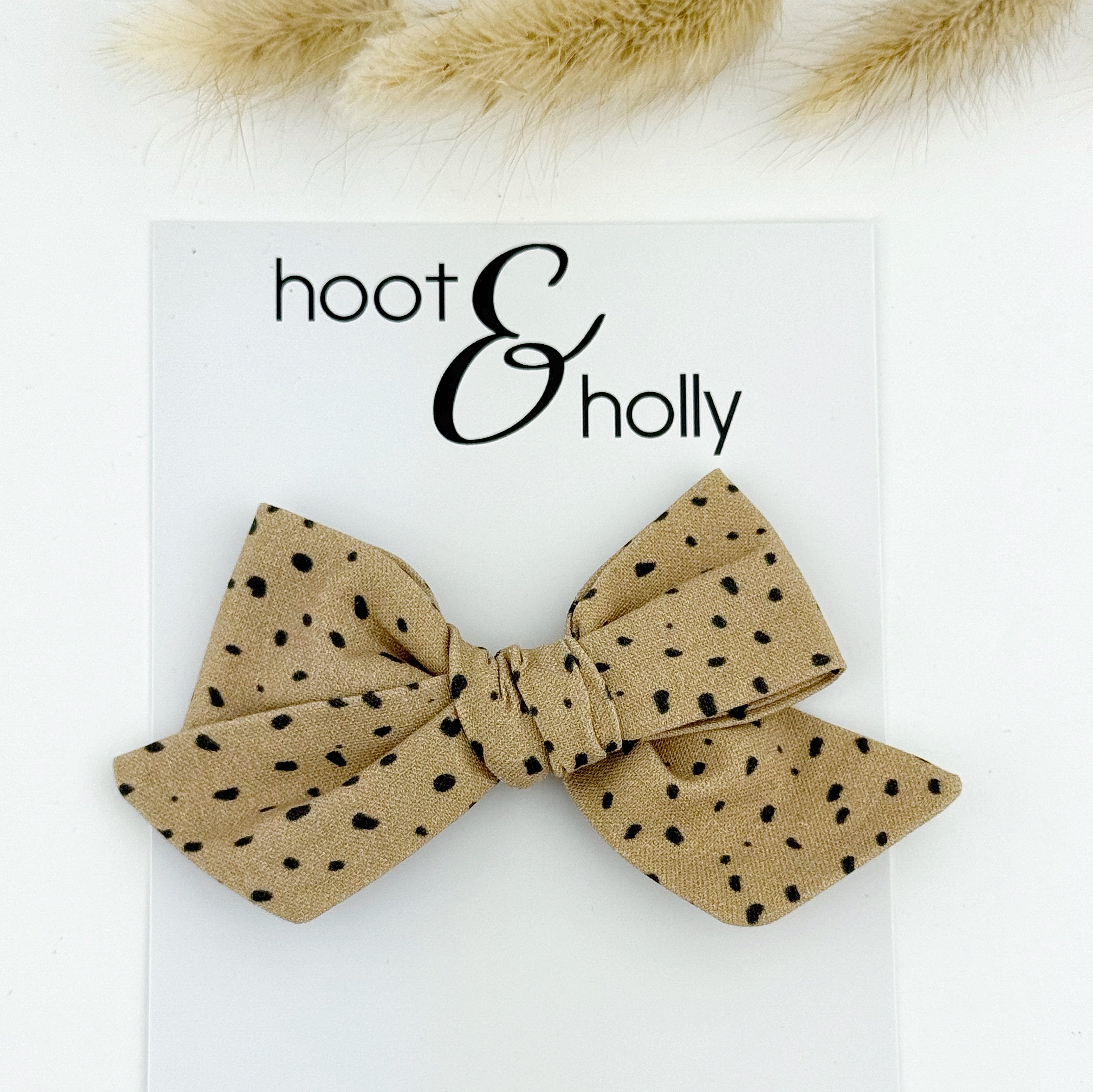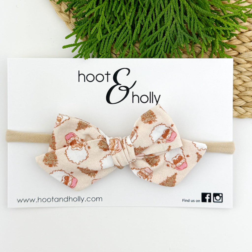 Beautifully crafted hand tied hair bow, the perfect size for babies, toddlers and girls of all ages. Victoria Bow size: 4" wide by 3" Nylon Headband - soft nude nylon that fits newborn to child. Premium no run nylon that is lightweight and gentle. Fabric: high quality cotton Handmade in Canada.