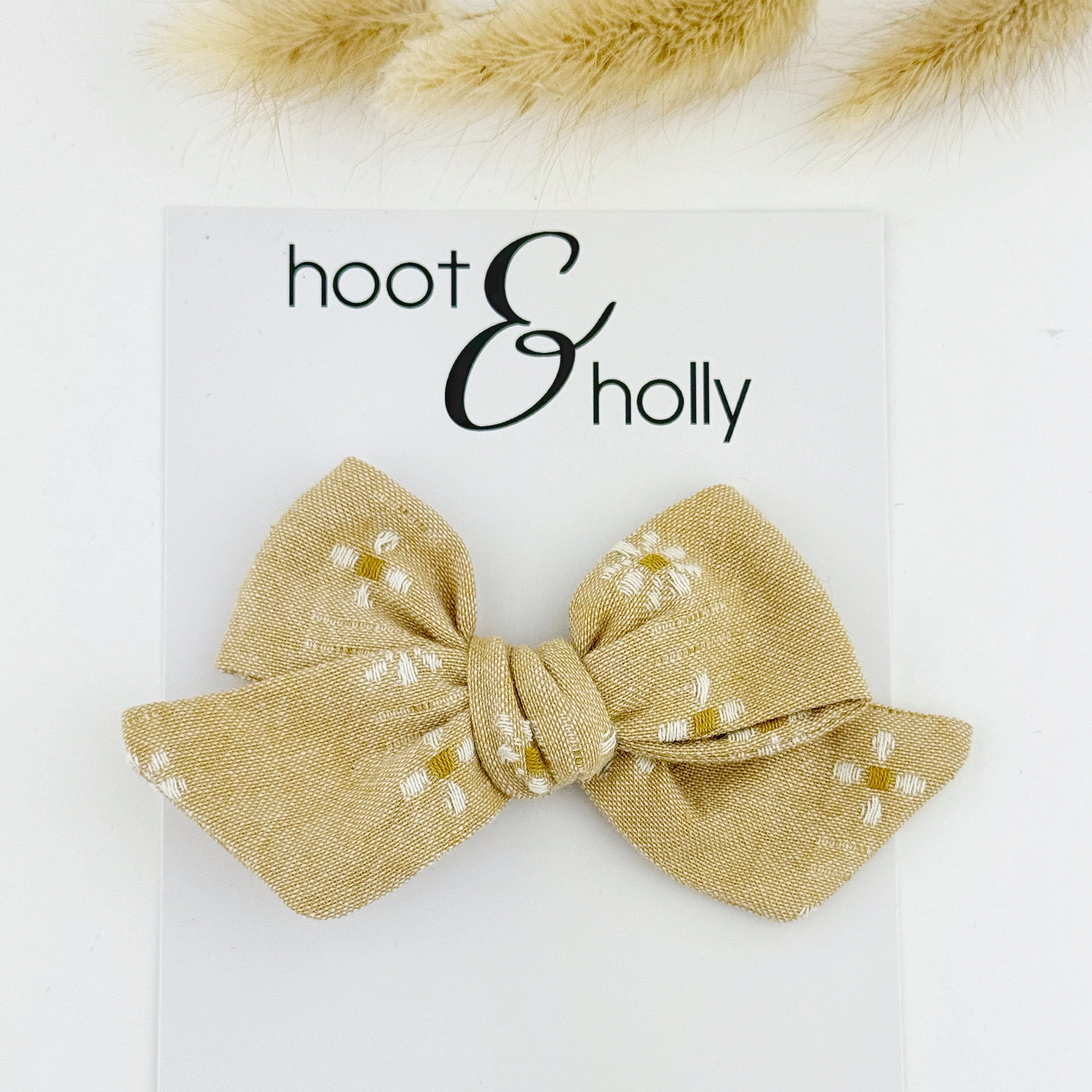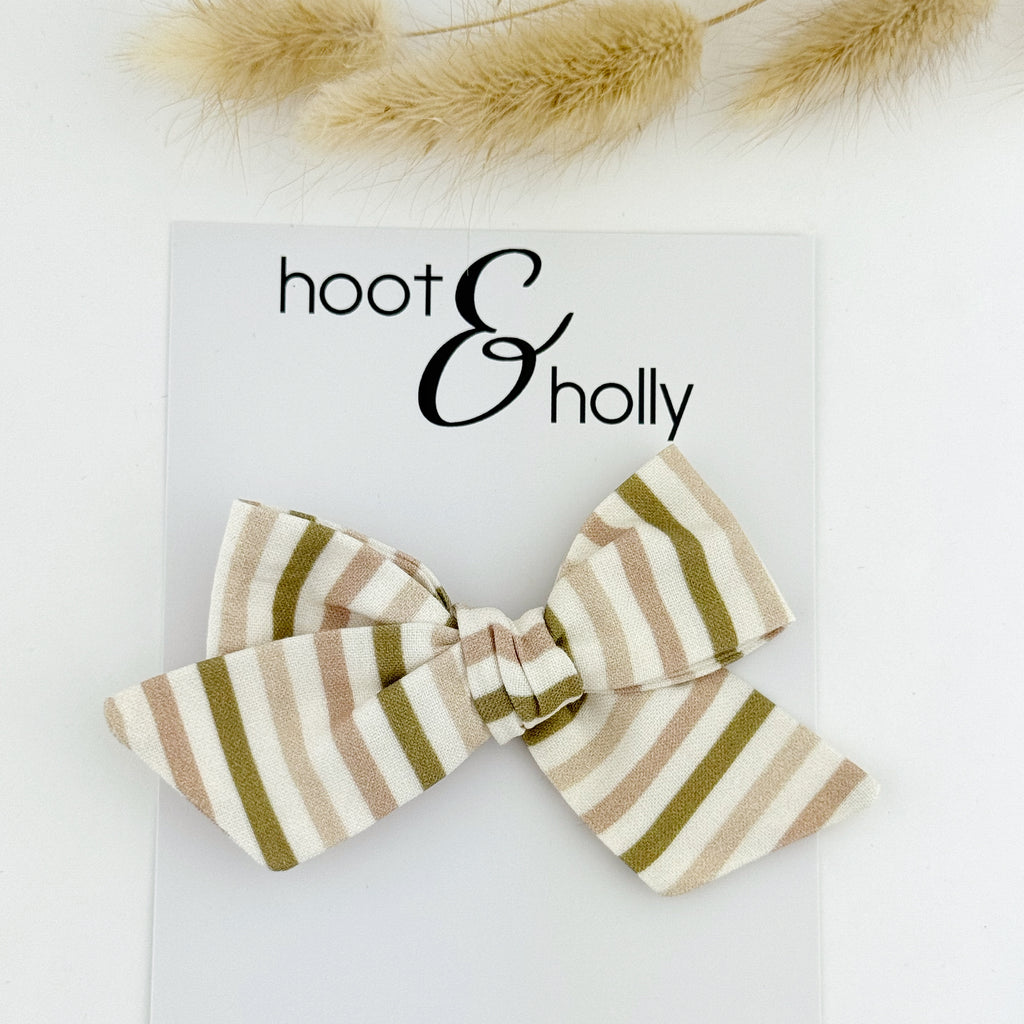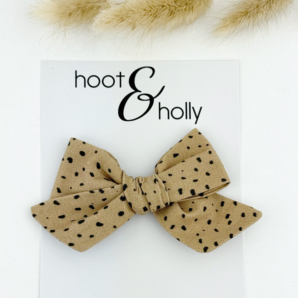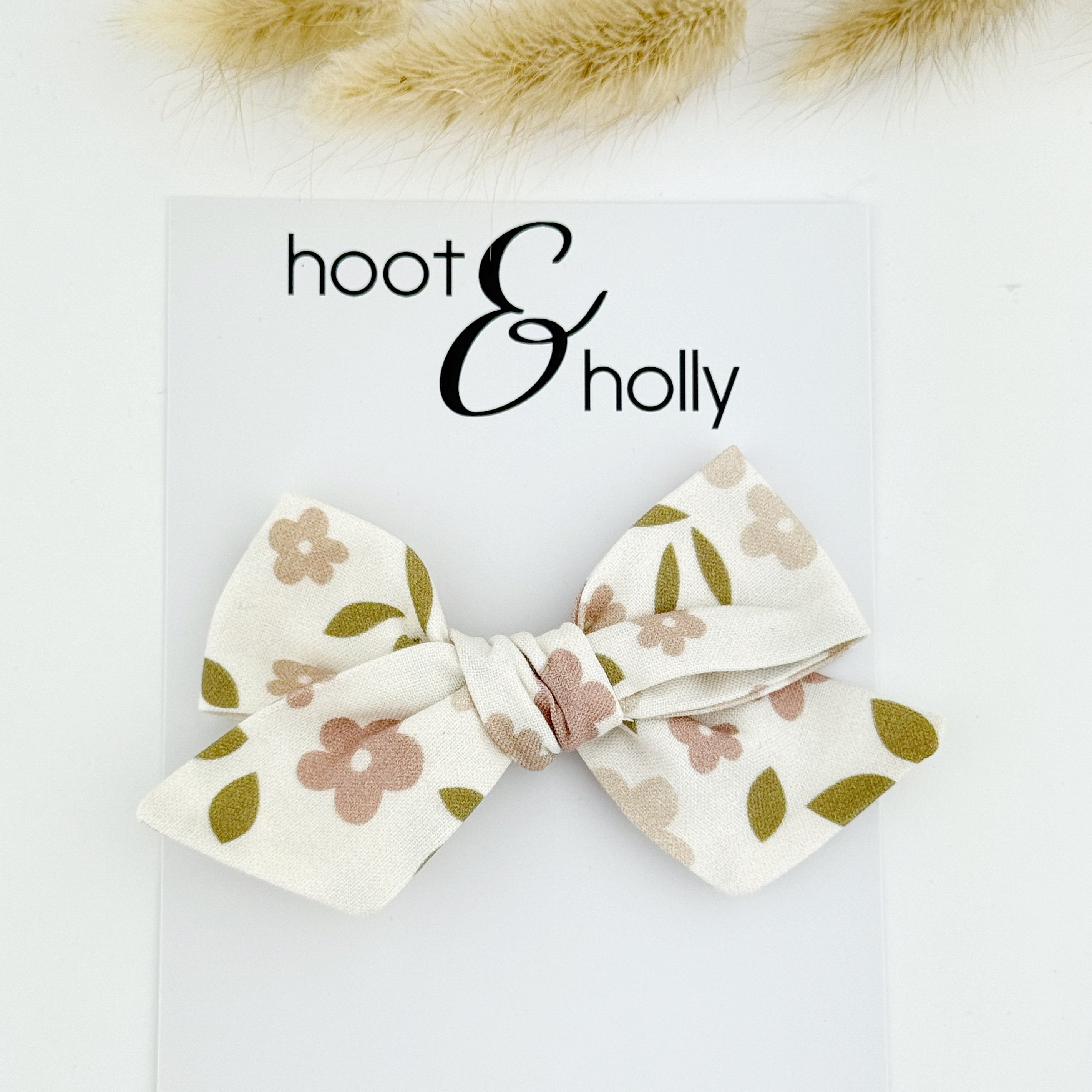 Beautifully crafted hand tied hair bow, the perfect size for babies, toddlers and girls of all ages. Victoria Bow size: 4" wide by 3" . Hair Clip - Teeth clip for all hair types - right side placement. Fabric: high quality cotton Handmade in Canada. All bows finished with ribbon lined metal hair clips that are safety tested and certified to be free of heavy metals like cadmium and 100% lead free. Our hair clips meet Canadian safety standards and regulations.