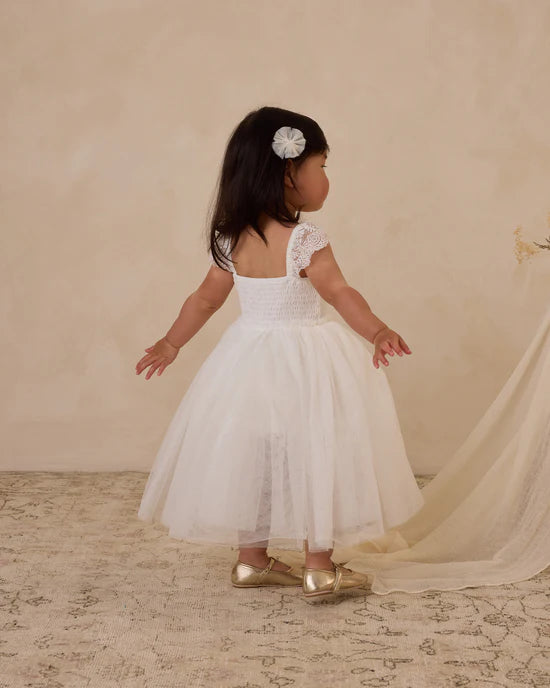 As pretty as it is classic, our Camilla Dress features a detailed lace overlay bodice, flutter lace sleeves, and a full skirt crafted in layers of tulle. The dress is fully lined to make the dress comfortable for your little one at any event.