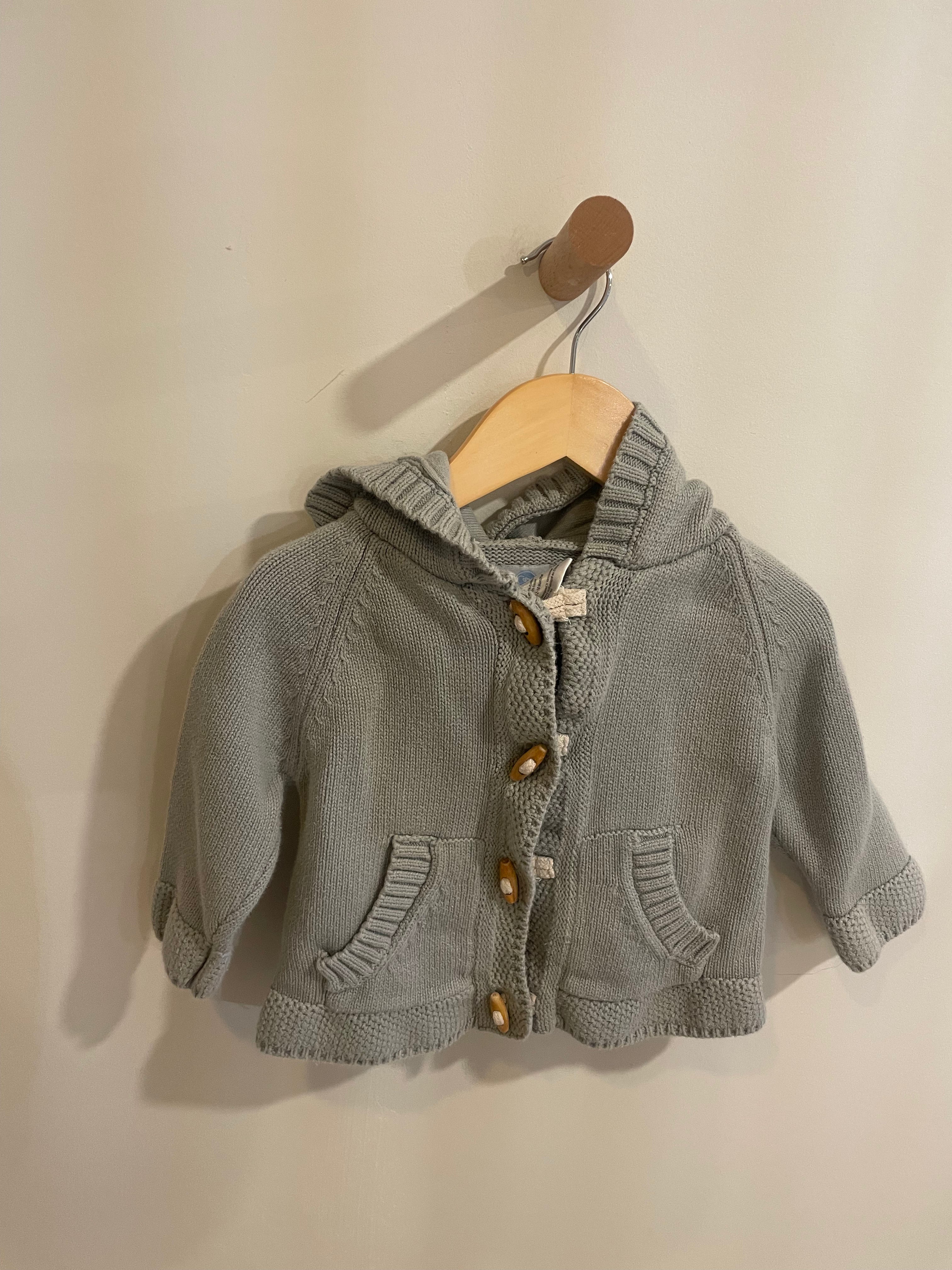 Thrifted |Green Hooded Sweater with Wood Buttons 12-18M by Beba Bean