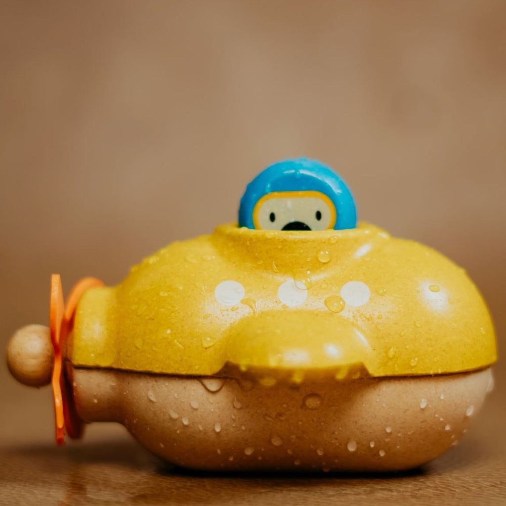 Brown background with Elephant by PlanToys. Elephant is a dark blue colour.