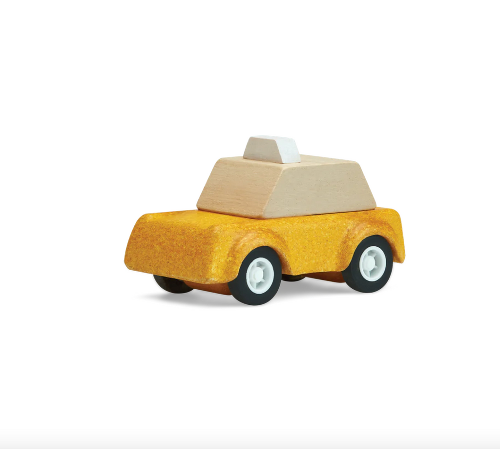 White background with the Classic Train by PlanToys. Train looks very classic on the front, with black and wood details.