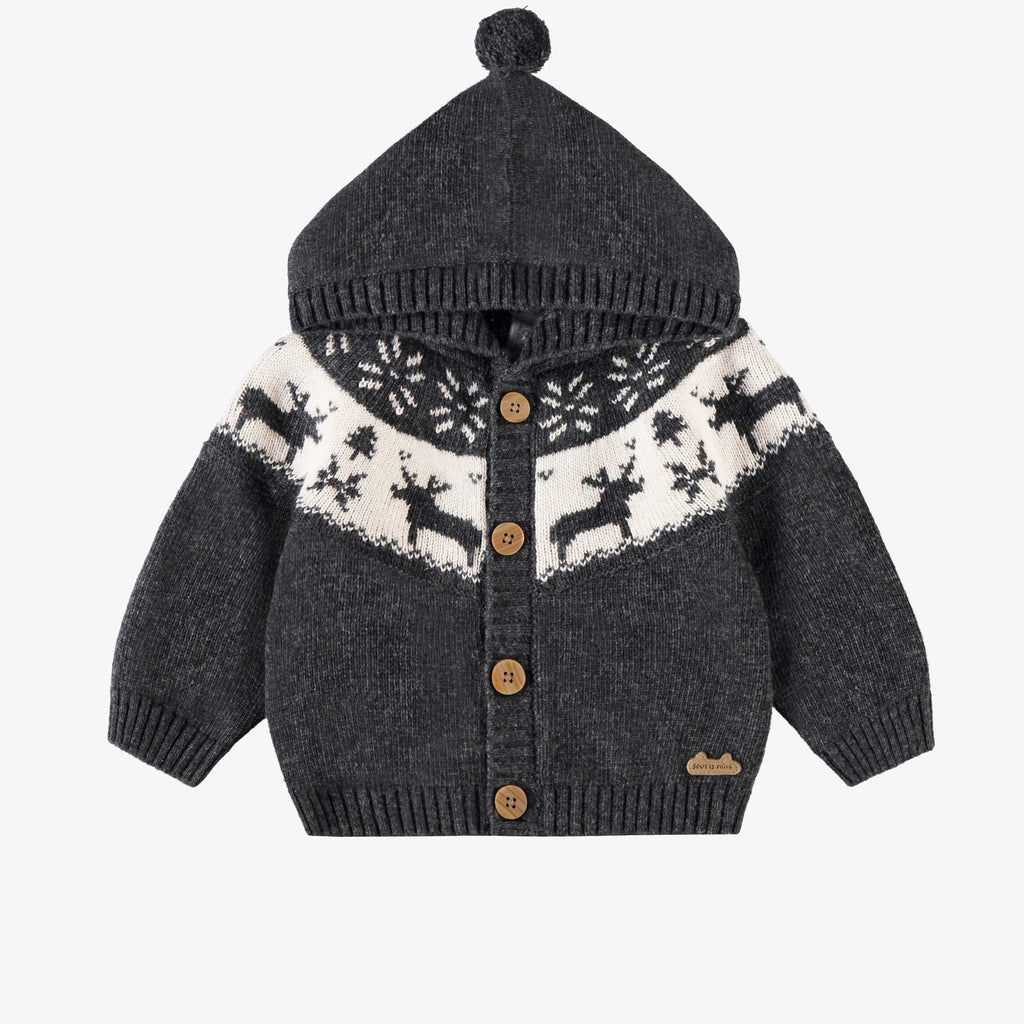 Knit Cardigan in Gray with Jacquard Patterns by Souris Mini