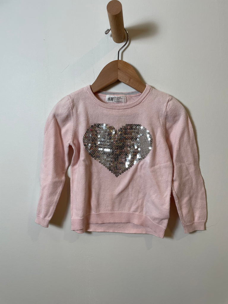 Thrifted |Pink Sweater with Sequin Heart 1 1/2YR -2YR by H&M