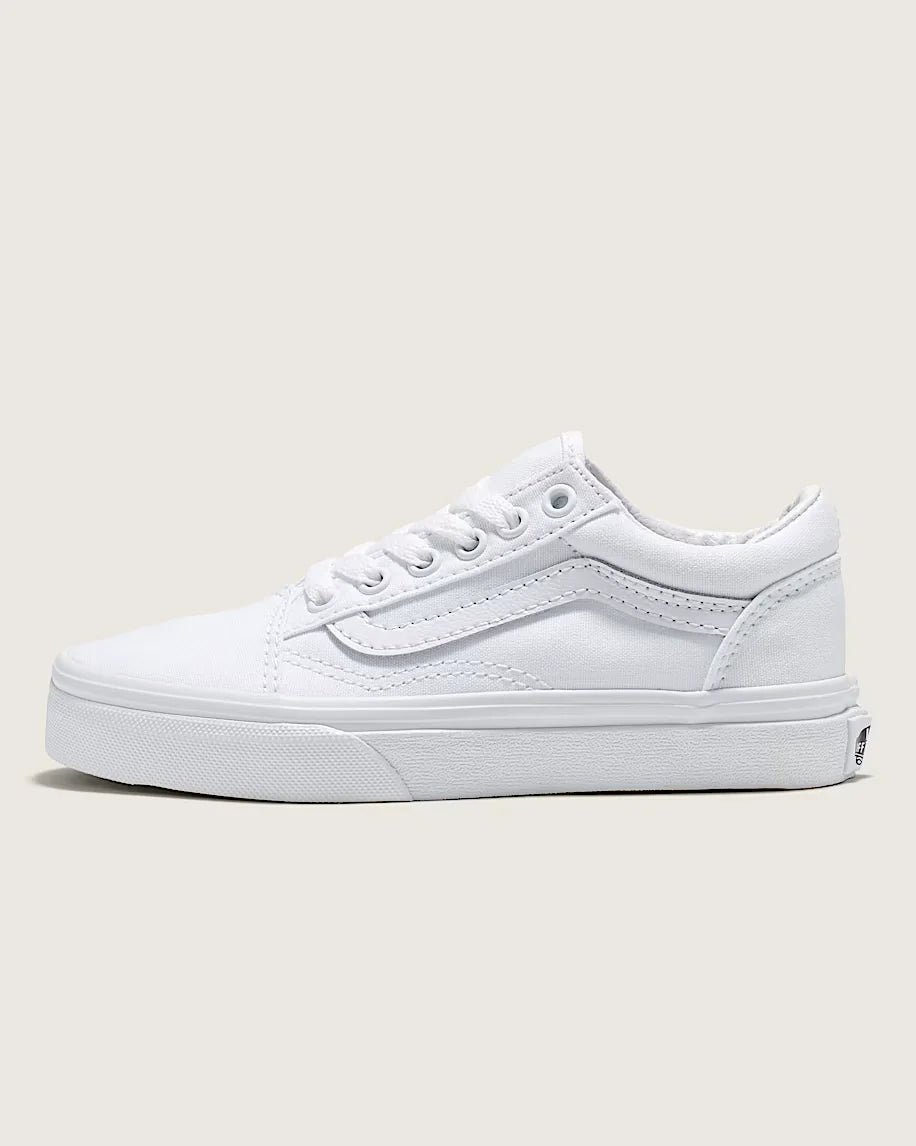 The Kids Old Skool V reimagines our iconic Sidestripe shoe by swapping traditional laces for double hook-and-loop closures. Made with signature suede and canvas uppers, this low-top style maintains its classic appeal while providing an easy, secure fit that ensures all-day comfort.