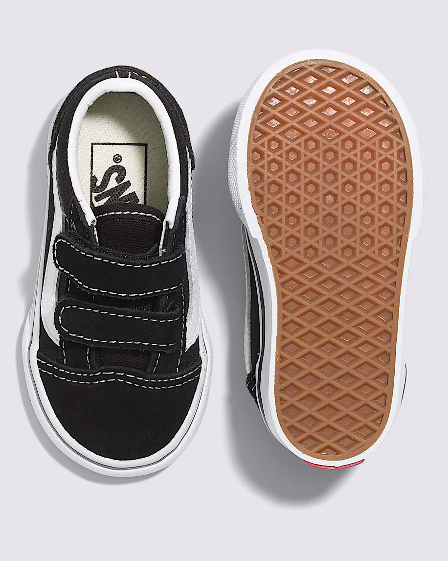 The Toddler Old Skool V reimagines our iconic Sidestripe shoe by swapping traditional laces for double hook-and-loop closures. Made with signature suede and canvas uppers, this low-top style maintains its classic appeal while providing an easy, secure fit that keeps your little one comfortable all day.
