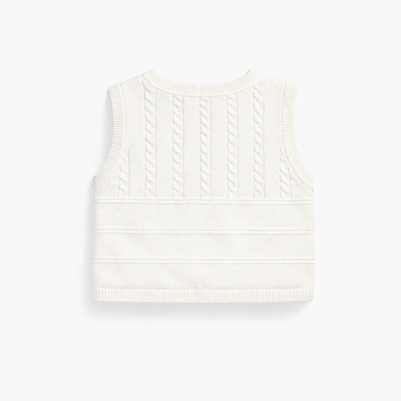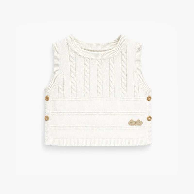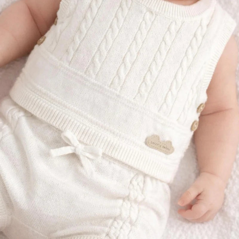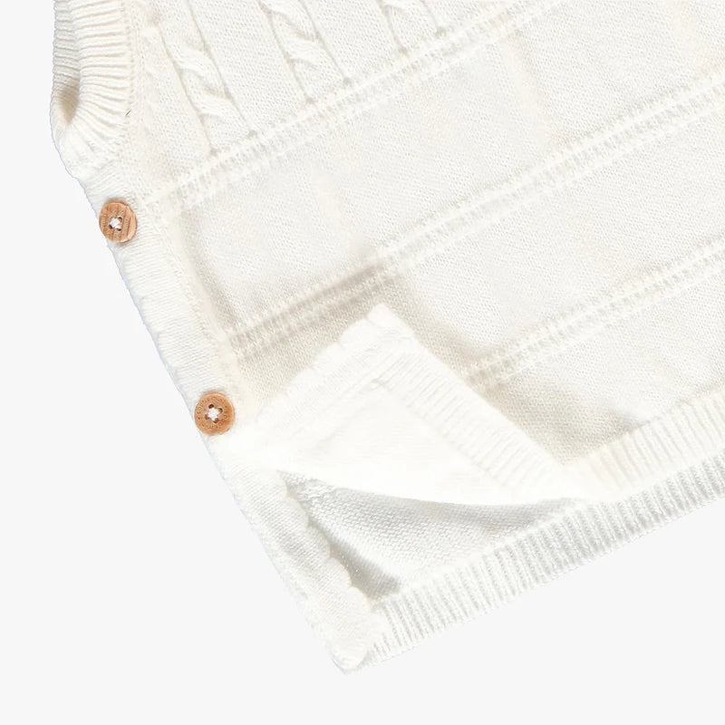 Cream knit tank top for a classic and elegant look. Features a round neckline, twisted knit details, and buttons. Made of 100% cotton knit in a regular fit for maximum comfort. Pair it with the matching shorts.