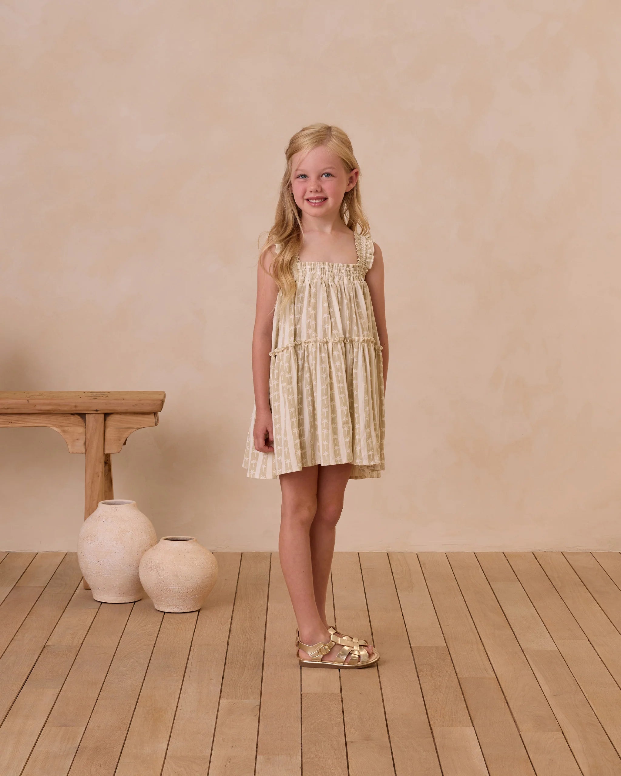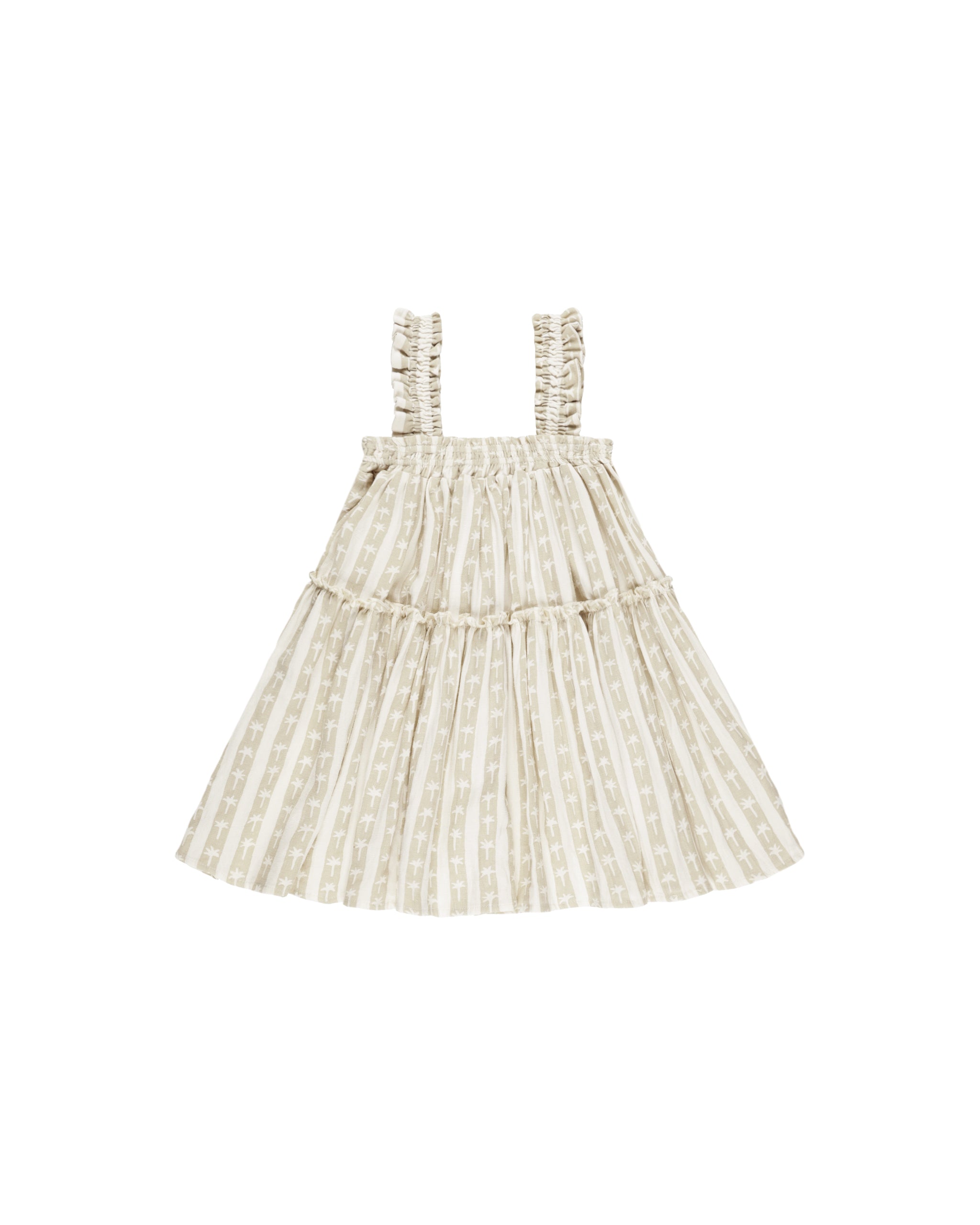 Our Cicily Dress features gathered detail at the sleeves, chest, and skirt's second tier.