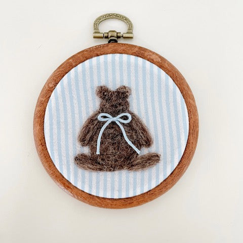 Circle Hoop Blue Bear Wool Art by The Beige Bear