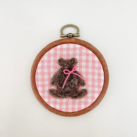 Circle Hoop Pink Bear Wool Art by The Beige Bear