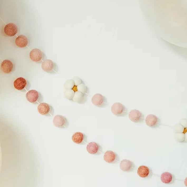 It Pairs beautifully with many of our pink and girly favourites - Pretty'n Pink Wool Felt Ball Garland - Pink Flag Garland - Birthday Girl Garland - Happy Birthday Pink Garland * As much as the two garlands in the picture pair beautifully, They are each sold separately.