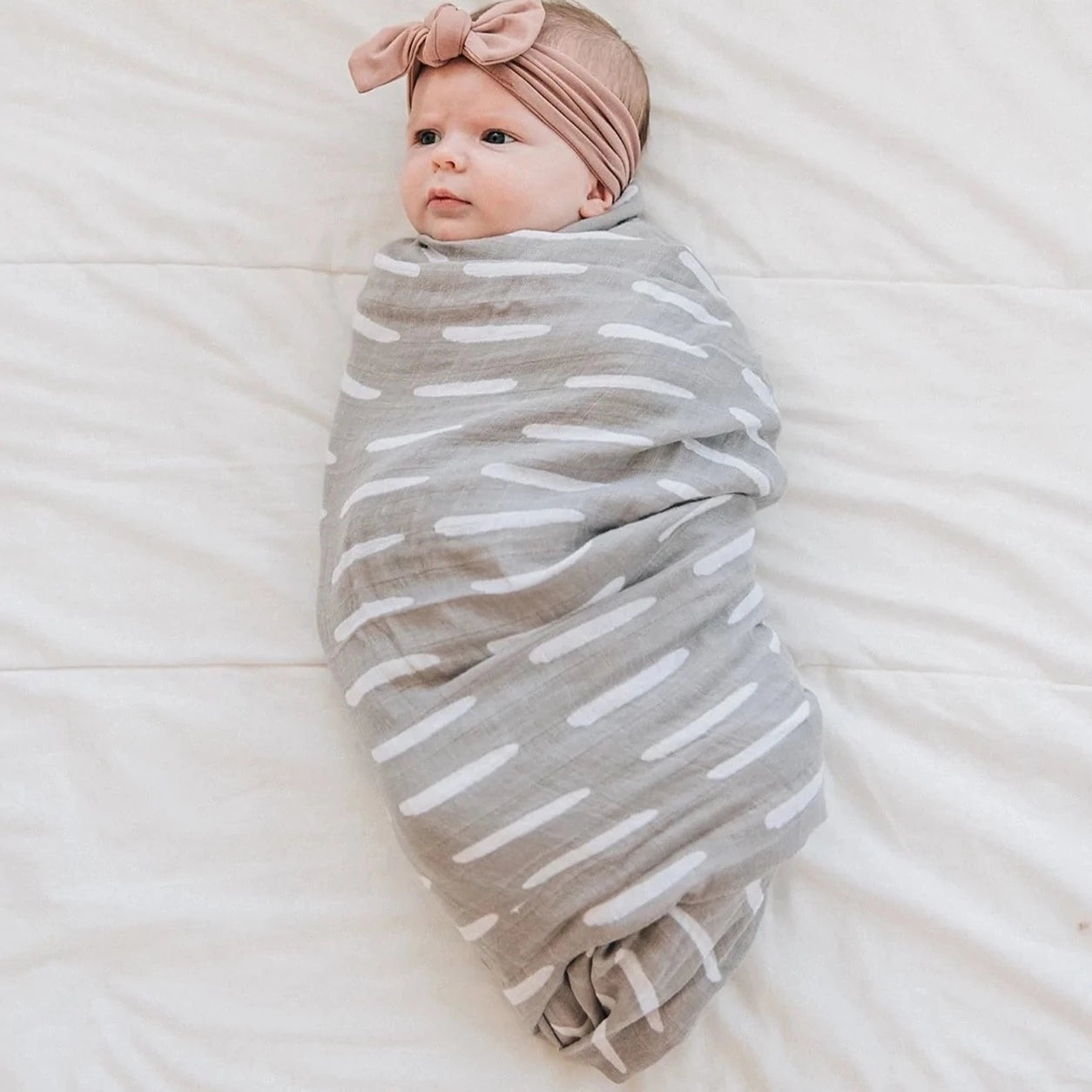 Meet our Grey Dash Muslin Swaddle Blanket. Our Muslin Blankets are 100% Cotton and as soft as butter. Our swaddles are designed with both parents and babies in mind. Modern yet adorable designs are great for every age. The lightweight fabric is perfect for swaddling, nursing, or use in the car seat. The muslin swaddle blankets measure 47"x47".