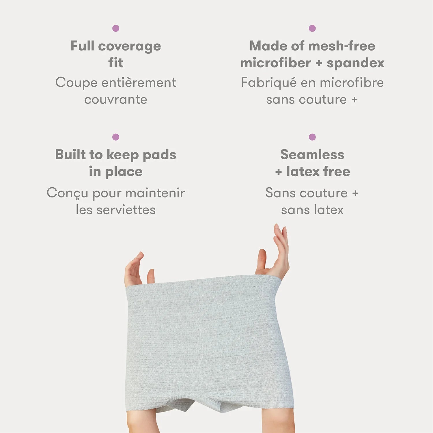 Mesh-free, mess-free recovery wear that stretches even more than you have. Soft, seamless and breathable to keep pads (and everything else) in place, without squeezing or pulling.