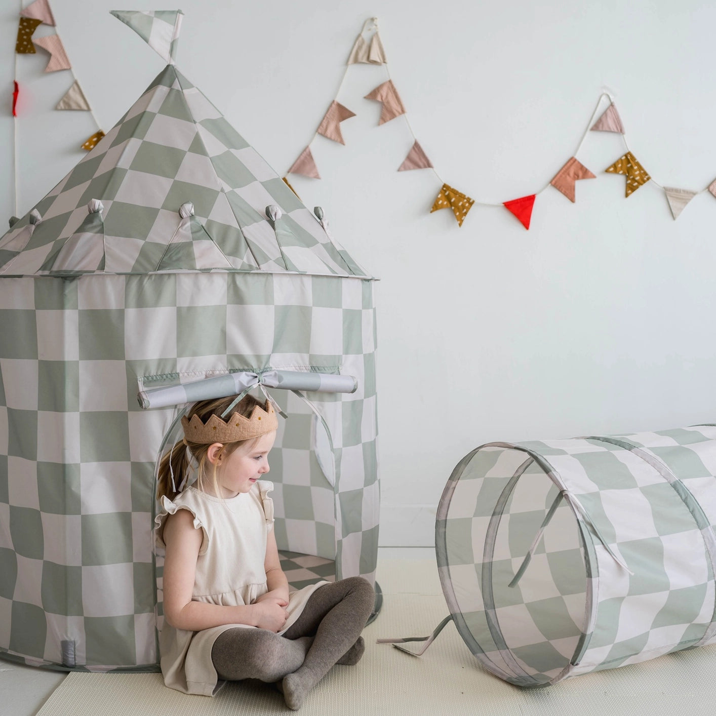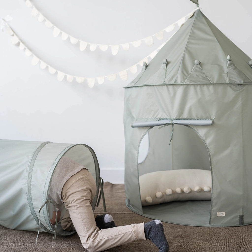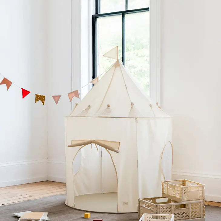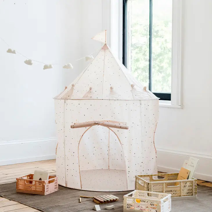 The 3 Sprouts Recycled Fabric Tent is the perfect play tent for your child! Easily assembled, lightweight and transportable, this tent will bring your child's imaginary world to life! This is the perfect place to play with friends or get cozy to read a book. Comes with tear-resistant recycled polyester and poles for sturdiness. Tent has 2 mesh windows and a door that can be raised and lowered. Comes in solid colours and prints to fit seamlessly in any room of your home!