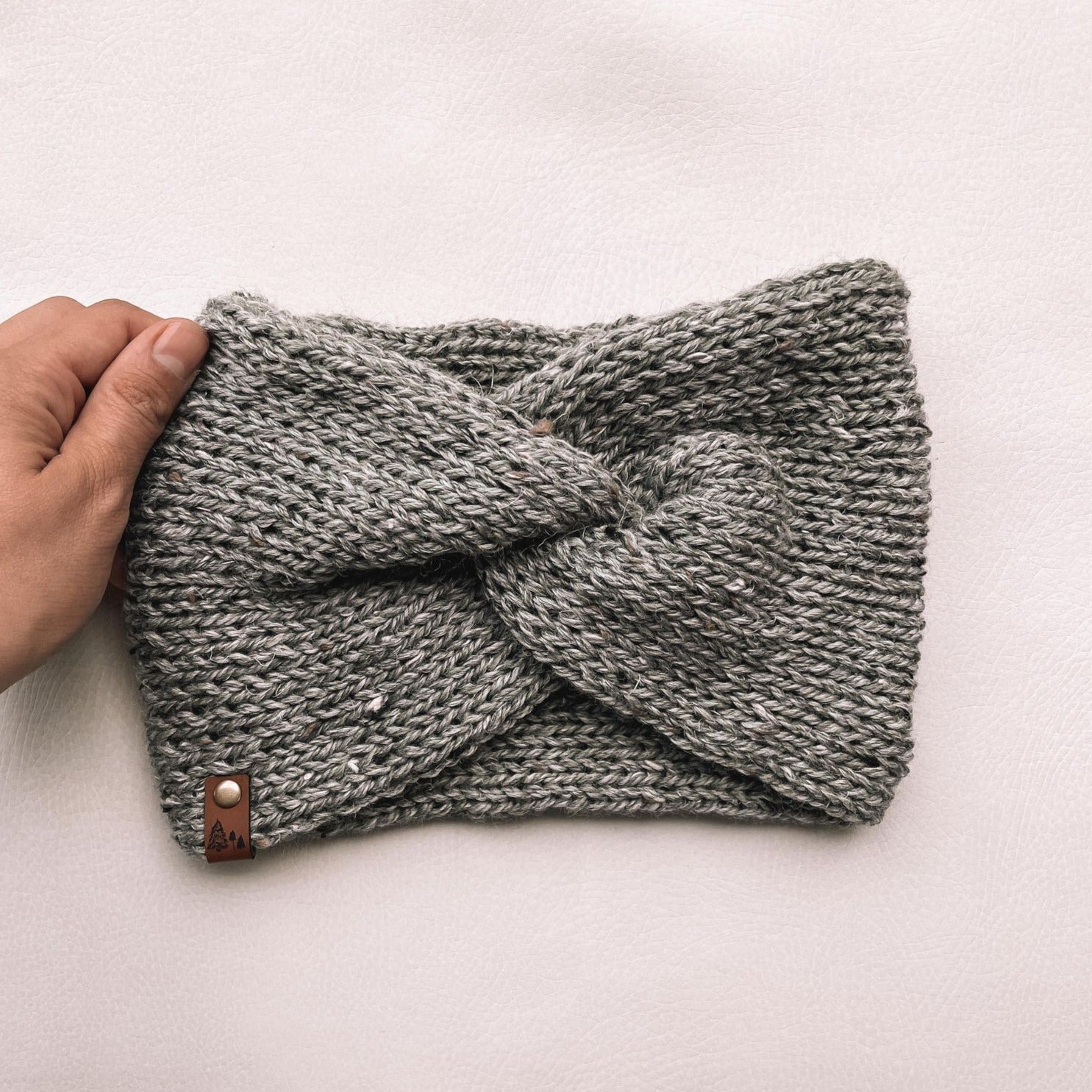 Handknit Twist Headband by Petit Nordique | Grey Tweed