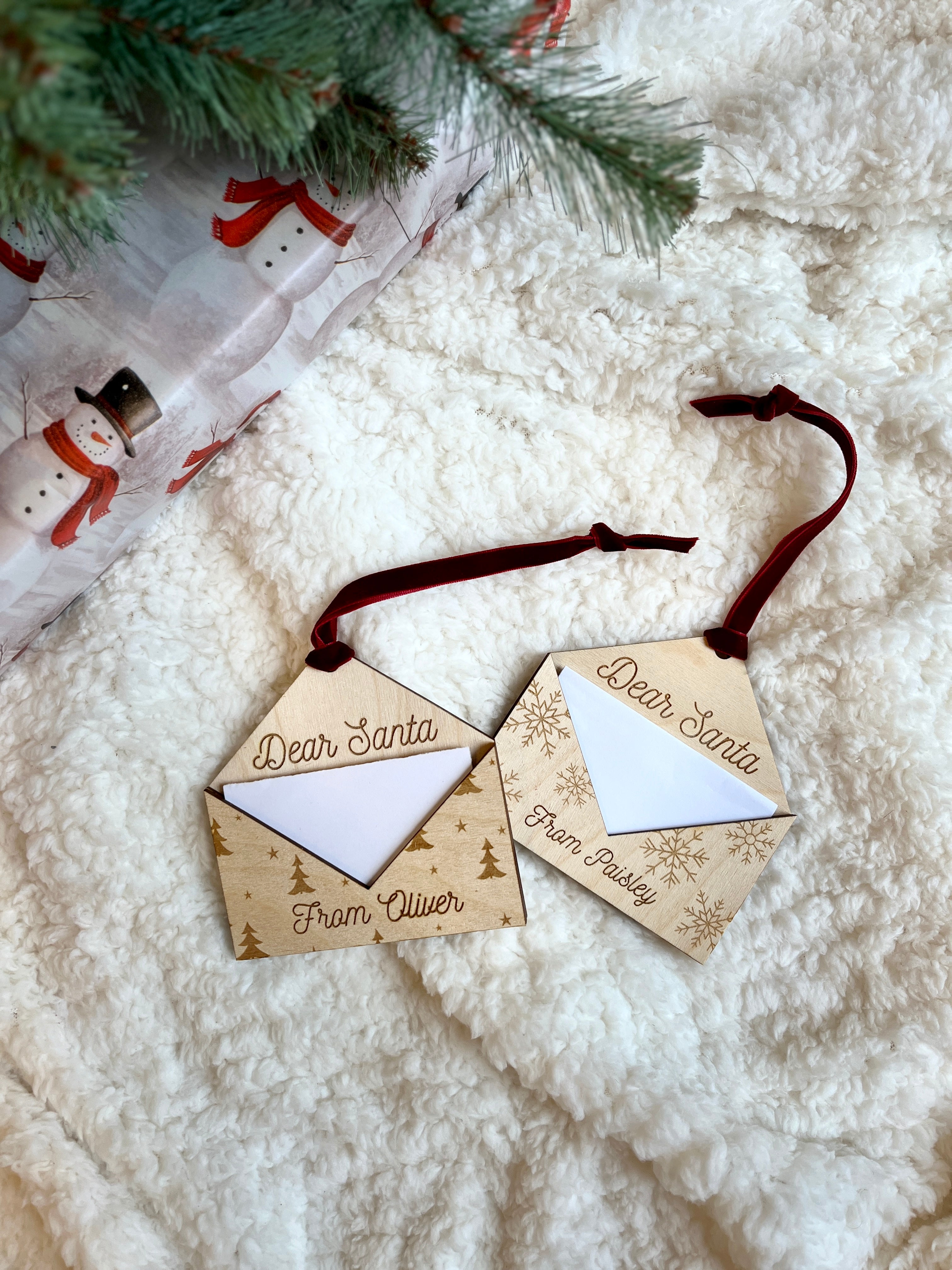 Wooden envelope Christmas ornament with space for your child to leave a letter to Santa!