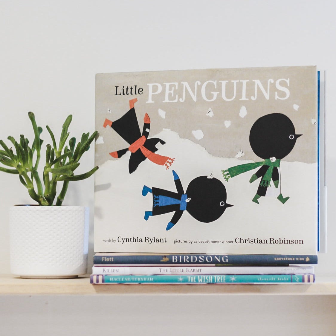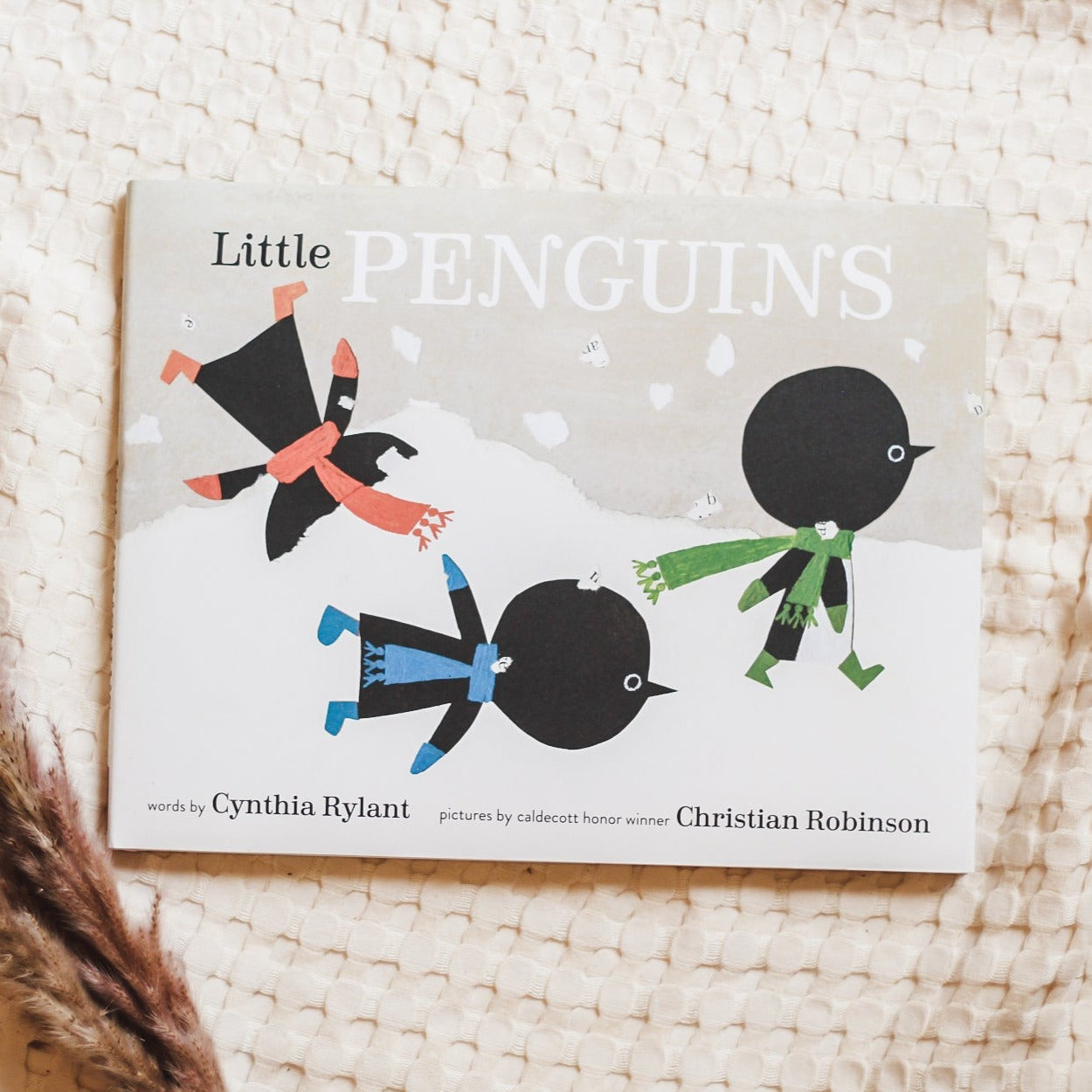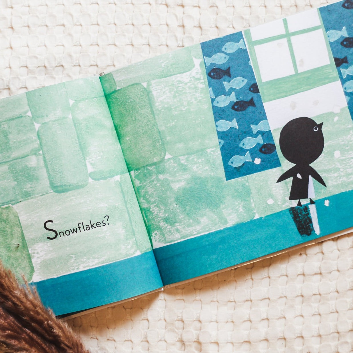 Snowflakes? Many snowflakes. Winter is coming. So begins this ever-so-simple story. As the snow starts to fall, the excited penguins pull out scarves, mittens, heavy socks, and boots, and Mama helps them bundle up. But when it’s time to go out, one timid penguin decides to stay home. Filled with waddling baby penguins, playful text, and delightful illustrations, this book feels like a young picture-book classic in the making.