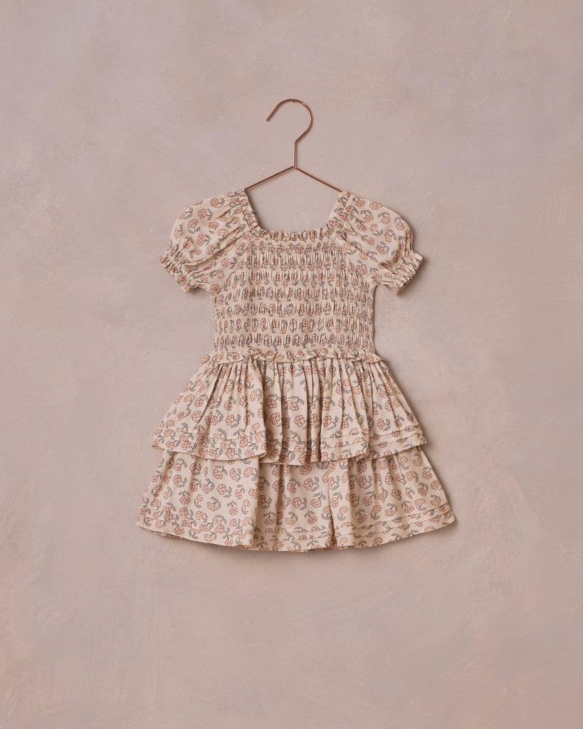 Noralee's Nancy Dress features a flared a-line skirt with a side slit, smocking at the center back, and ruffle detailing at the neck and sleeve openings with a sweet bow at the center front to complete the look.