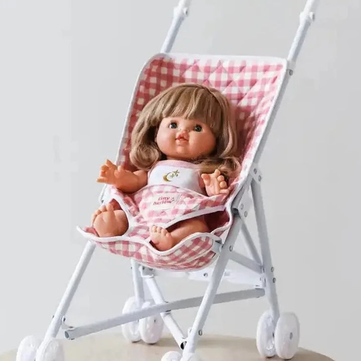 Here are the Tiny Harlow strollers! Practical, durable and pretty, they will delight children who want to take their doll everywhere with them. Features: - Lightweight - Foldable - Washable - Interchangeable designs
