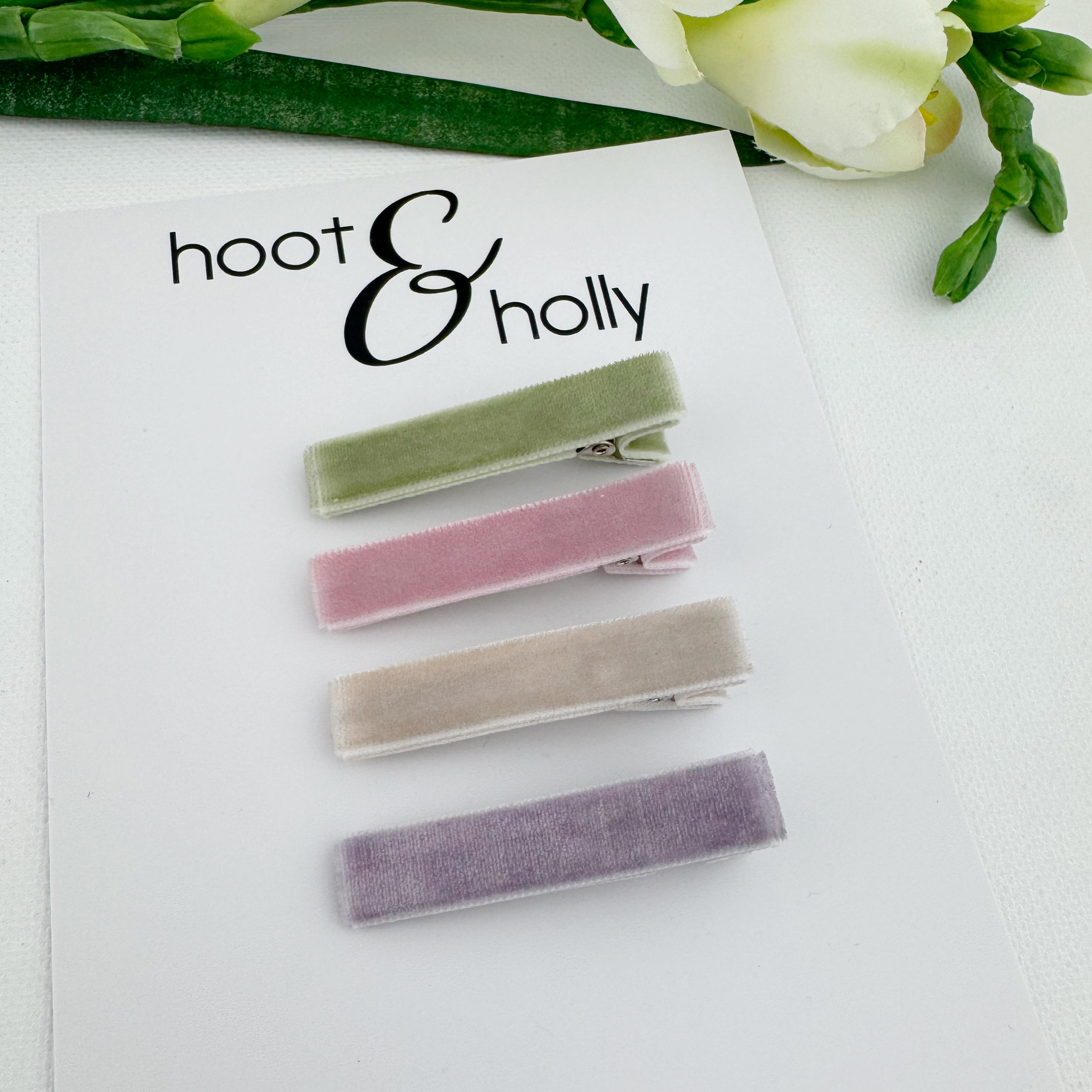 This set includes: green , pink, tan, denim They clip in with ease and stay put for all day wear. Each clip is partially lined with velvet. These clips are 1.75 inches in length. Available in two choices of clips: 1) Lined non-slip alligator clip || super gentle with a silicone grip || for baby and toddler bangs and fine hair girls 2) Teeth Clip || amazing hold for all day wear|| medium to thick hair Handmade in Canada * This product contains small parts which may pose a choking hazard. This item is not a toy and is not recommend for children under 3. Adult supervision required.