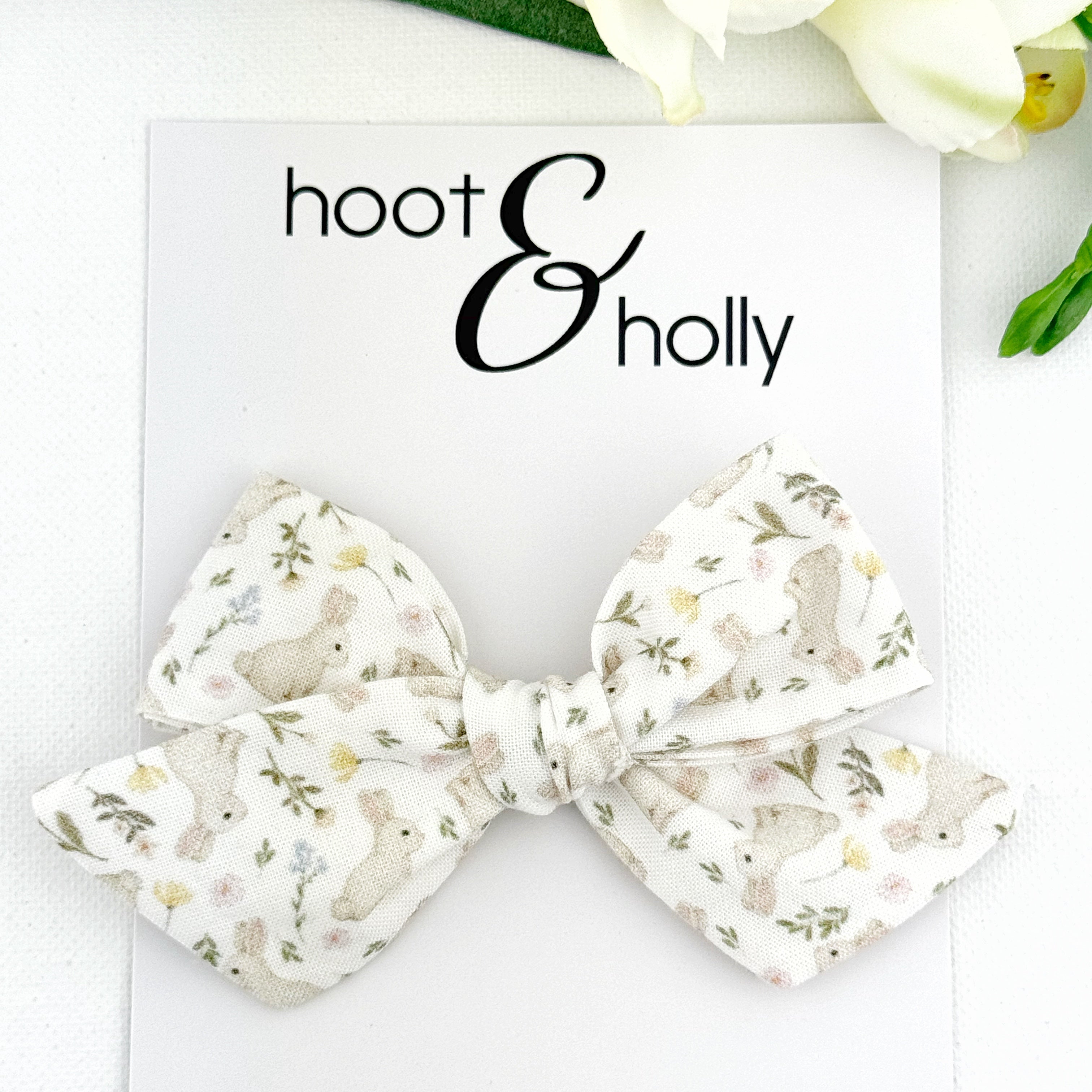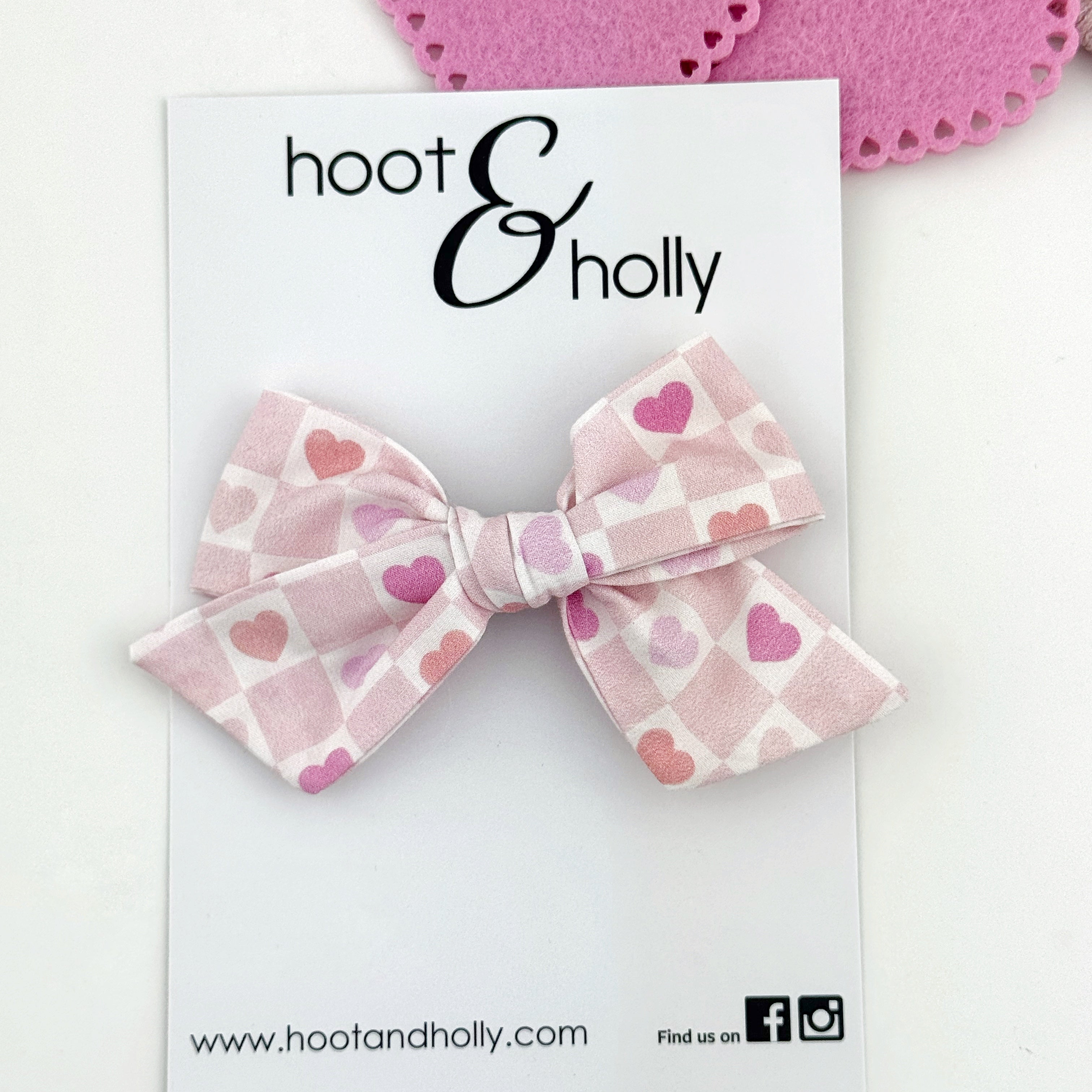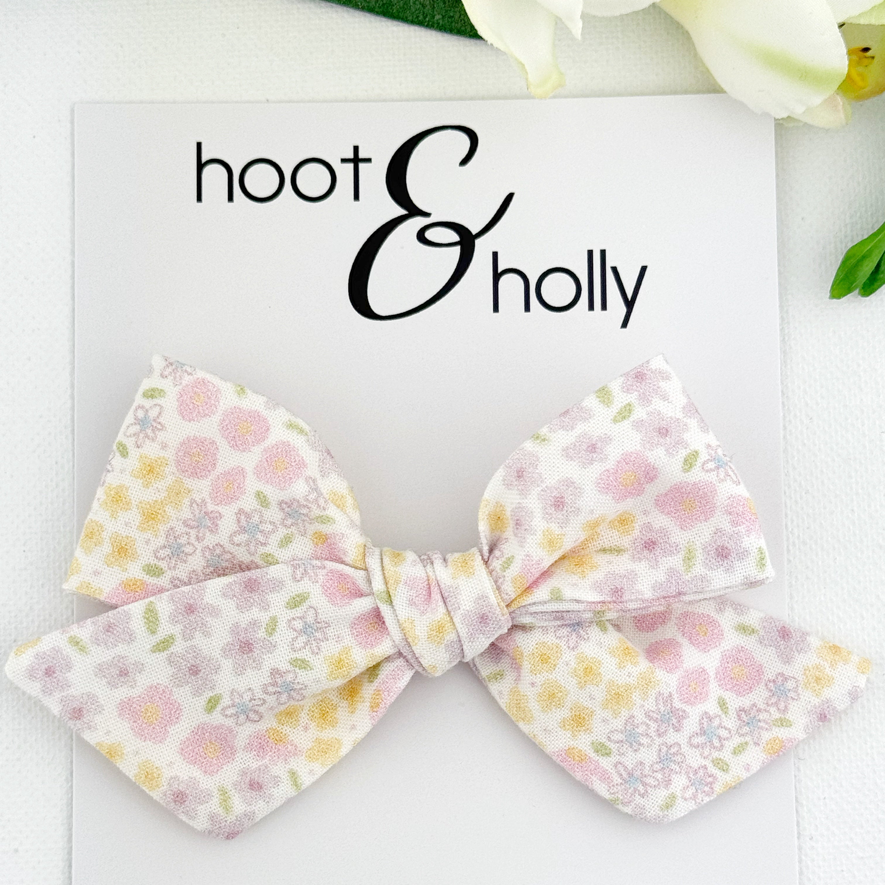 Beautifully crafted hand tied hair bow, the perfect size for babies, toddlers and girls of all ages. Victoria Bow size: 4" wide by 3" . Hair Clip - Teeth clip for all hair types - right side placement. Fabric: high quality cotton Handmade in Canada. All bows finished with ribbon lined metal hair clips that are safety tested and certified to be free of heavy metals like cadmium and 100% lead free. Our hair clips meet Canadian safety standards and regulations.