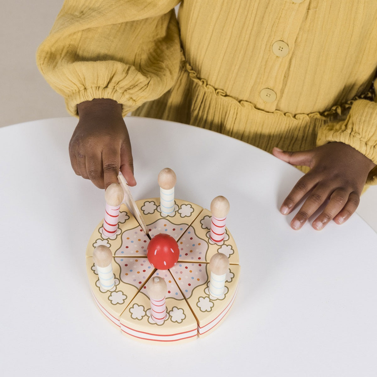 Serve up a slice of this delicious looking birthday cake of dreams. Painted using non-toxic, water based paints, this durable toy is simply irresistible. This sustainable wooden classic is ideal for imaginative fun. A great tool for encouraging social interaction, improving dexterity and fine motor skills.