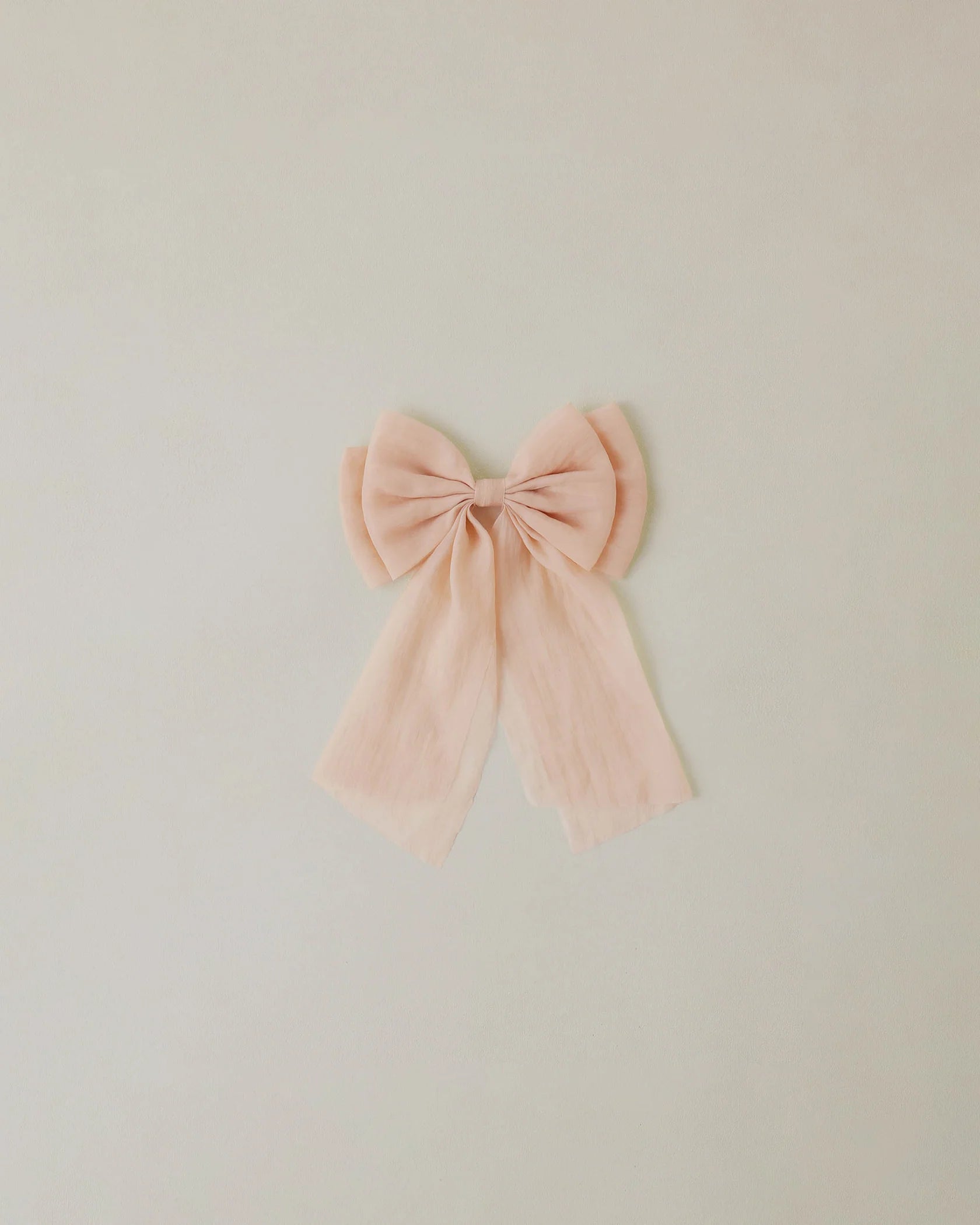 A gorgeous bow perched on a rose gold alligator clip for effortless wear and all-day hold.