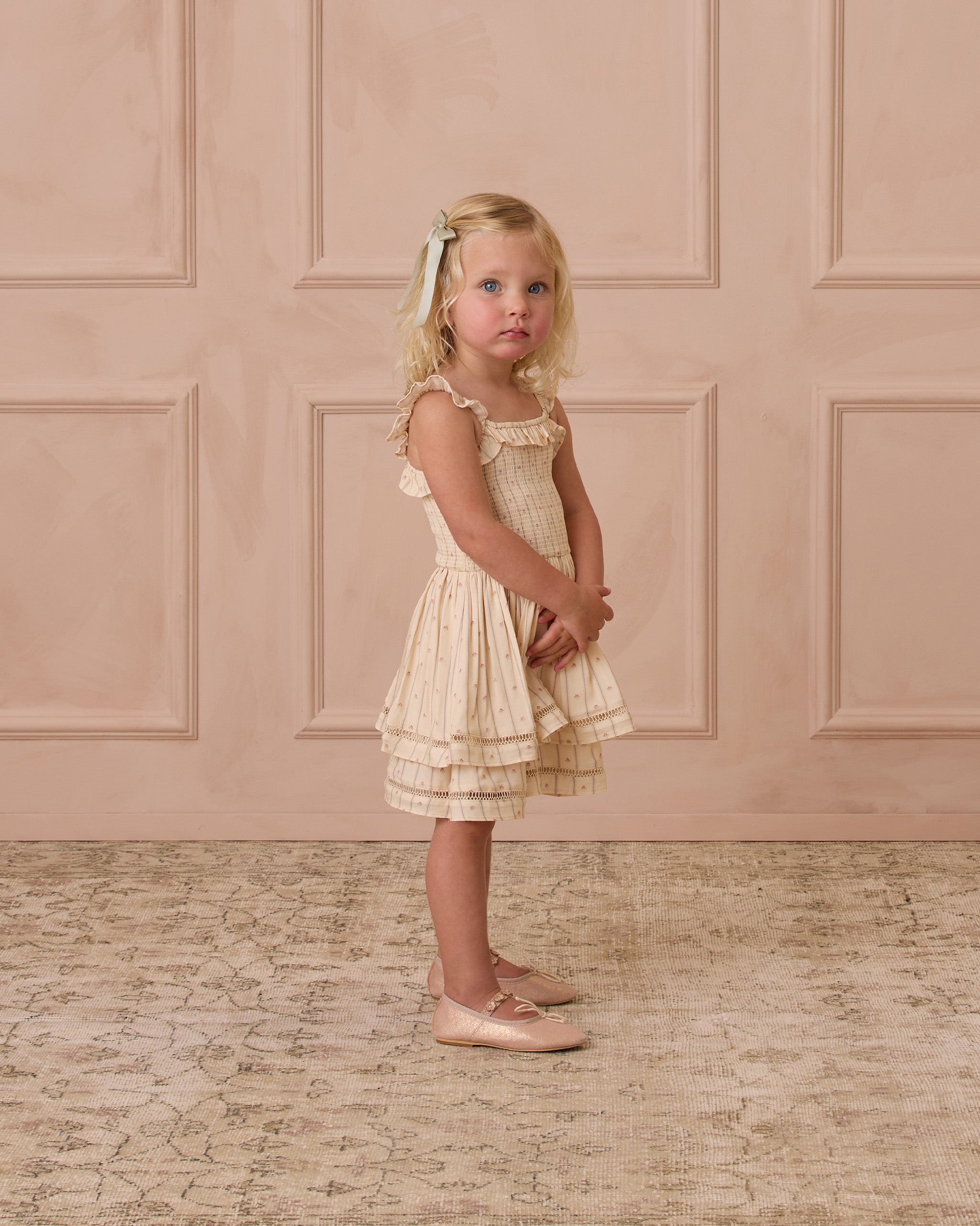 Noralee's Birdie Dress features a smocked bodice with ruffle straps and a flowy skirt perfect for twirling.