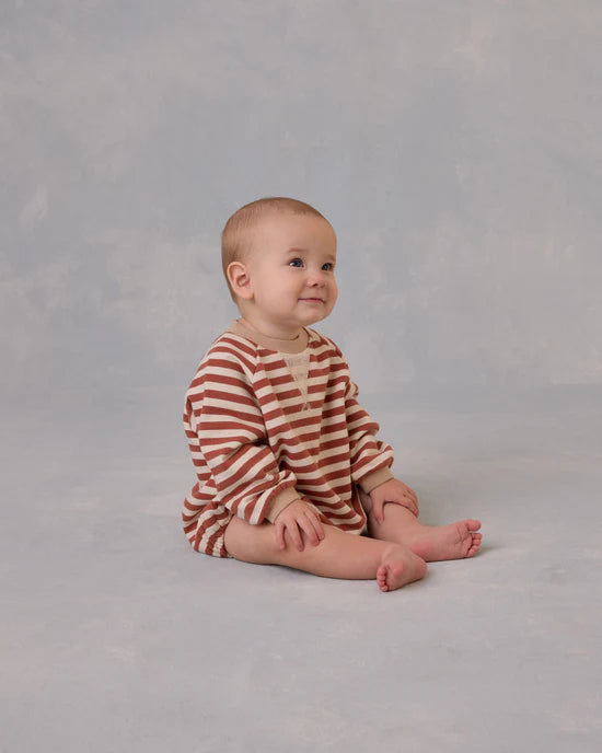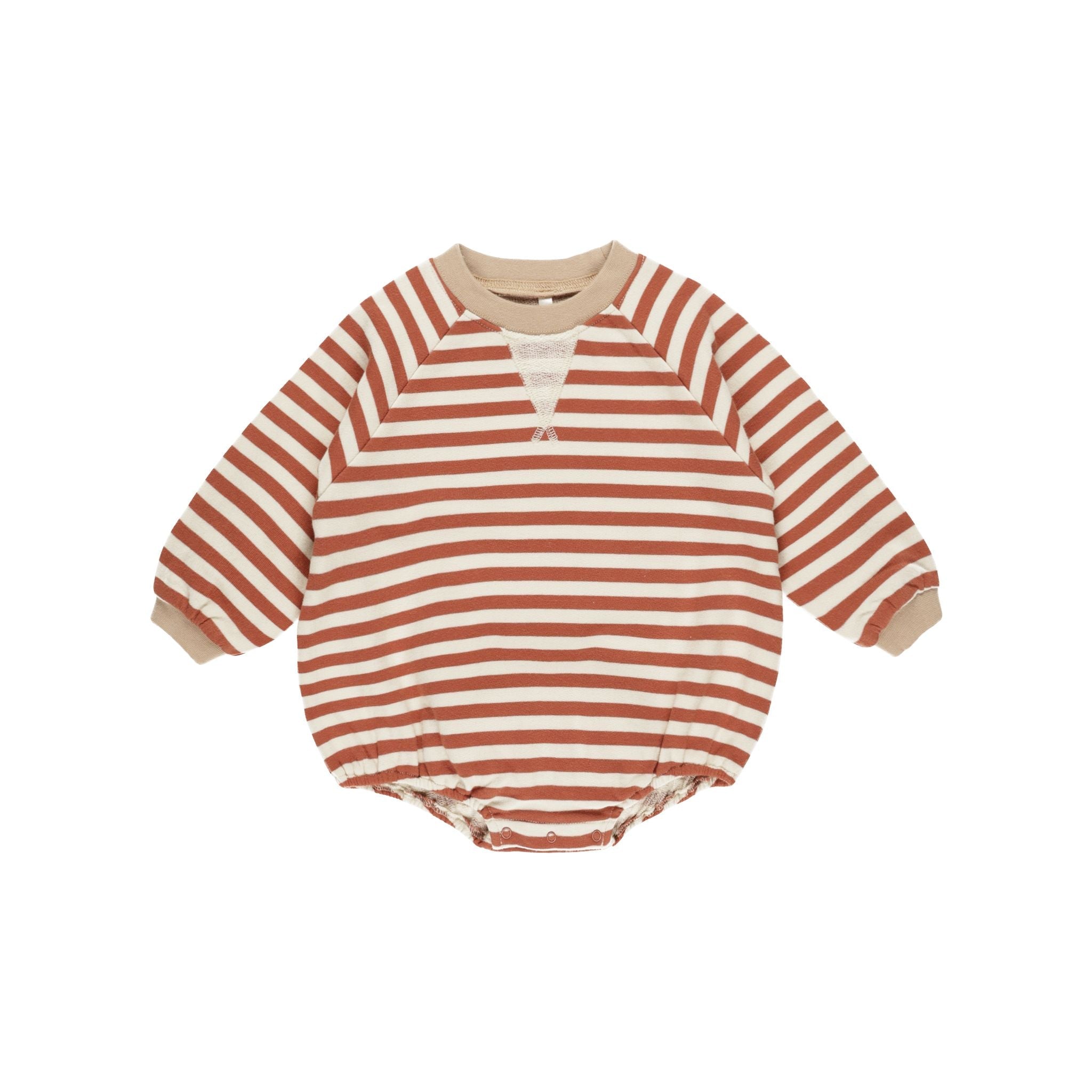 Long sleeve bubble romper made from our soft french terry fabric. Designed with elastic leg openings and bottom snap closures for easy changing.