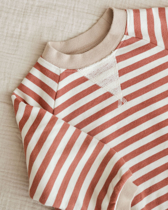 Featuring the 'poppy stripe' print with 'mocha' coloured ribbing - a classic warm stripe for sunny days