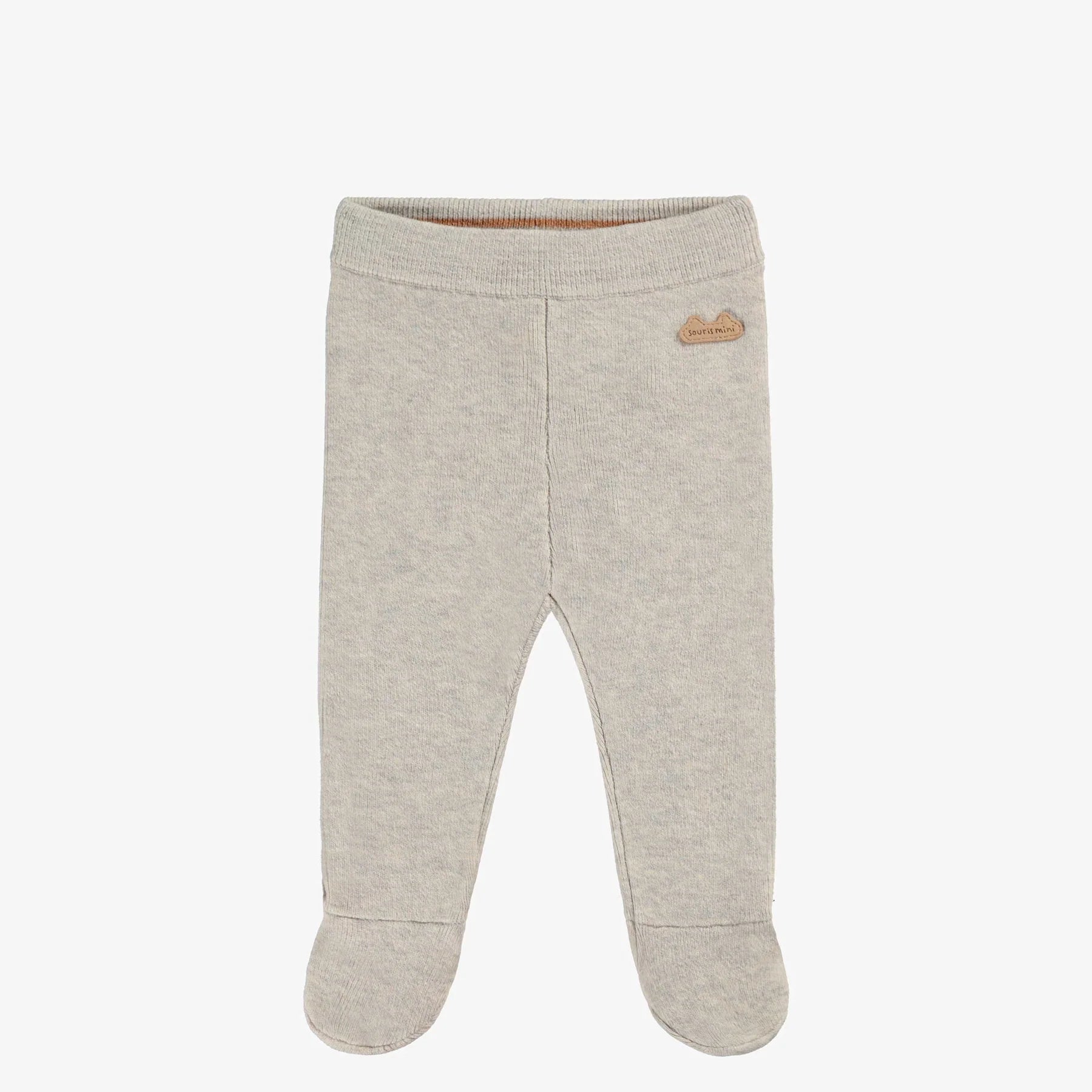 An everyday essential in the perfect neutral tone. These soft cream knit leggings feature a comfortable elastic waistband and pair effortlessly with any outfit. Sizes 0–3M to 6–9M include built-in feet to keep tiny toes cozy.