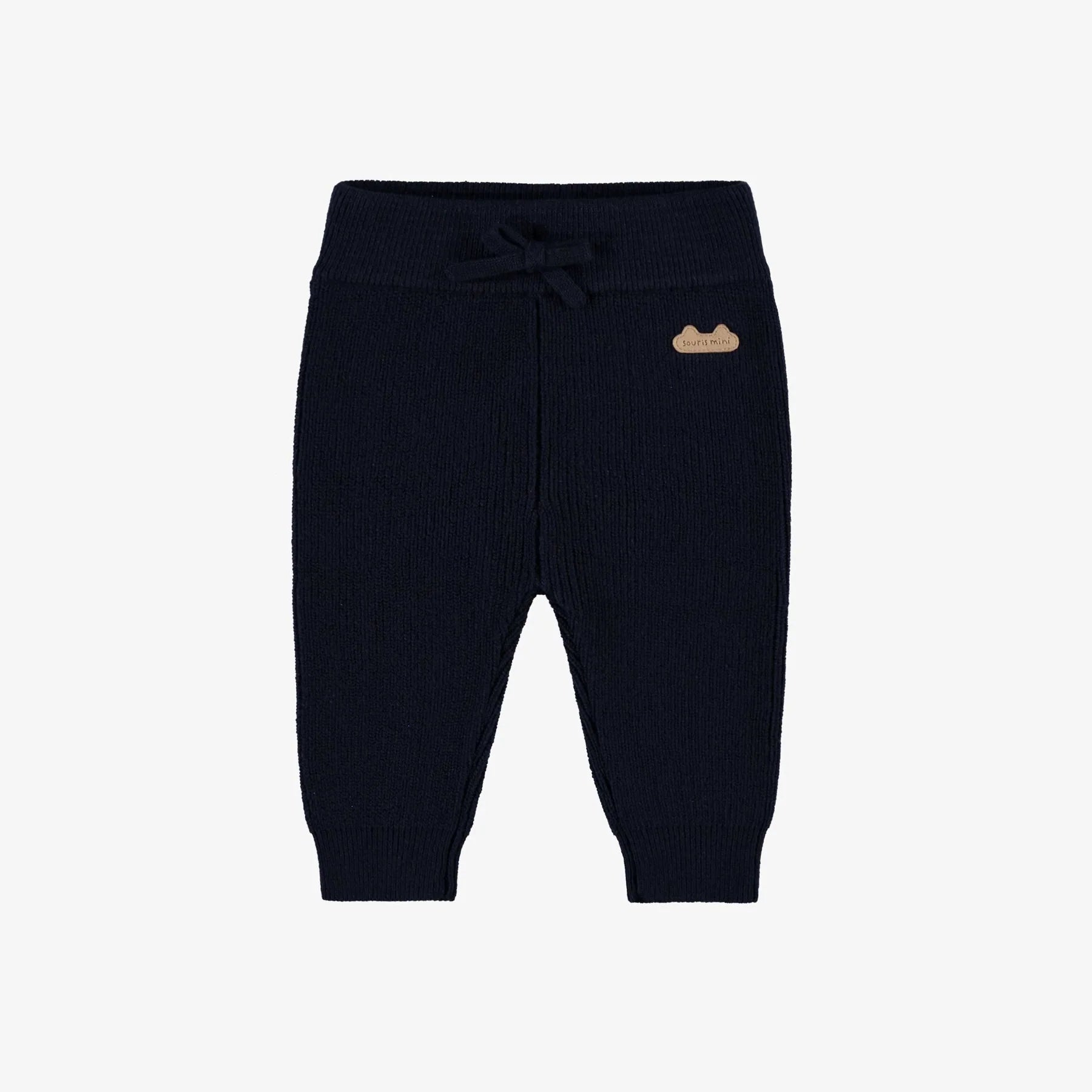 Comfy, cozy, and effortlessly cute. These navy knit pants are made for everyday comfort, featuring a soft ribbed waistband and cuffs for a snug fit. Finished with a sweet little decorative bow at the front for an added touch of charm.