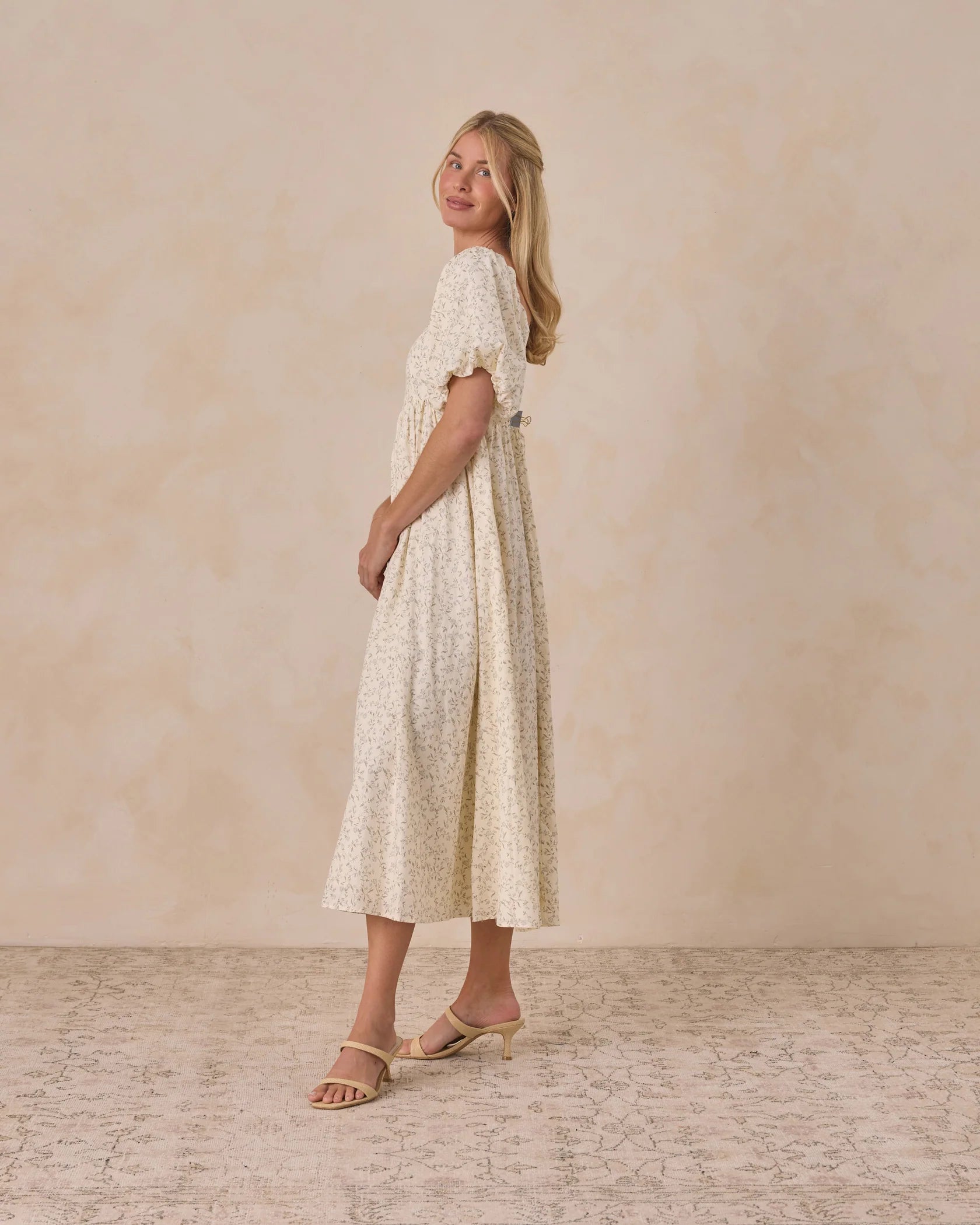Empire waist maxi dress with bubbled sleeves and a smocked back bodice for a great fit.