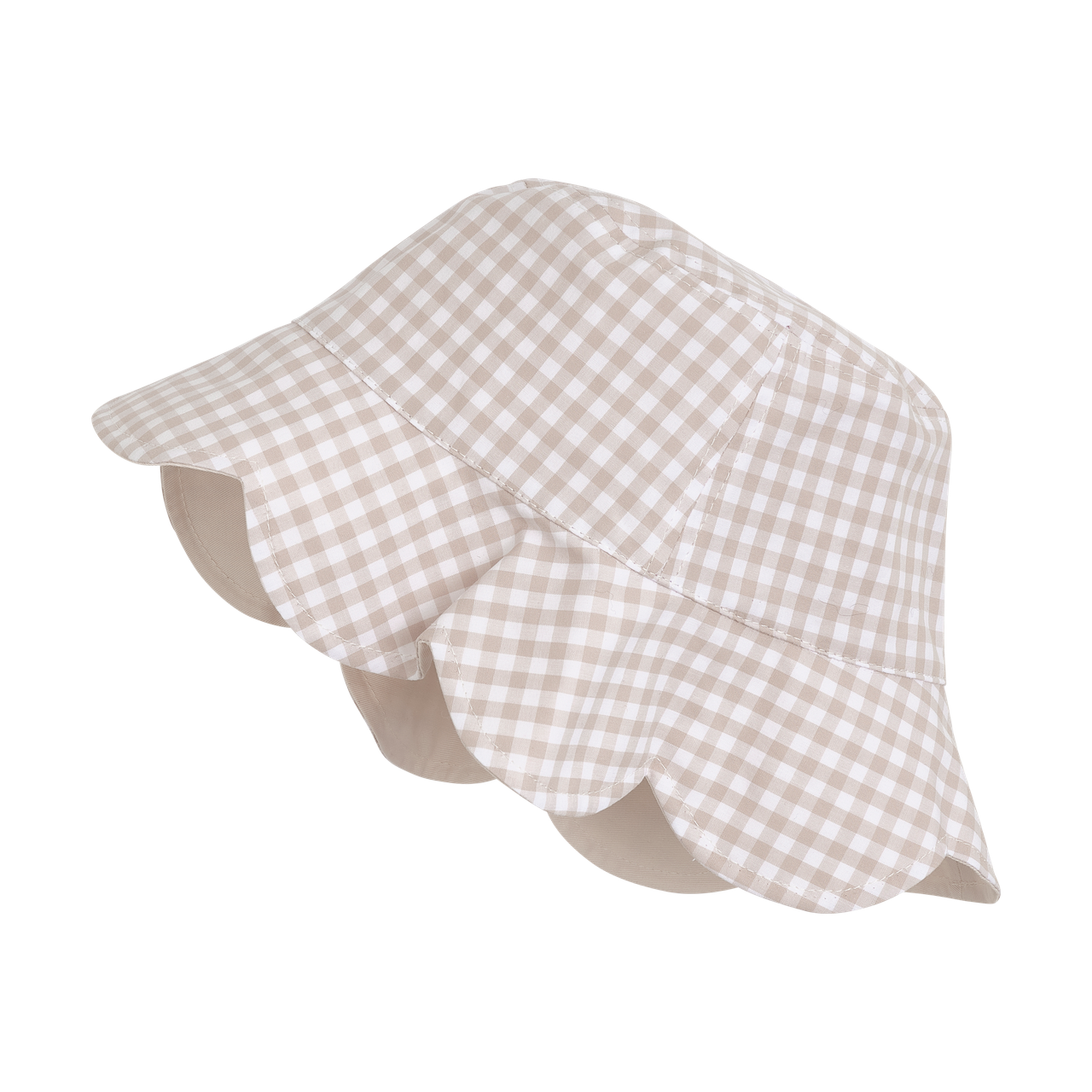 From Danish brand Huttelihut, this check bucket sun hat combines playful pattern with UPF 40 protection. Breathable cotton keeps little ones comfortable outdoors.