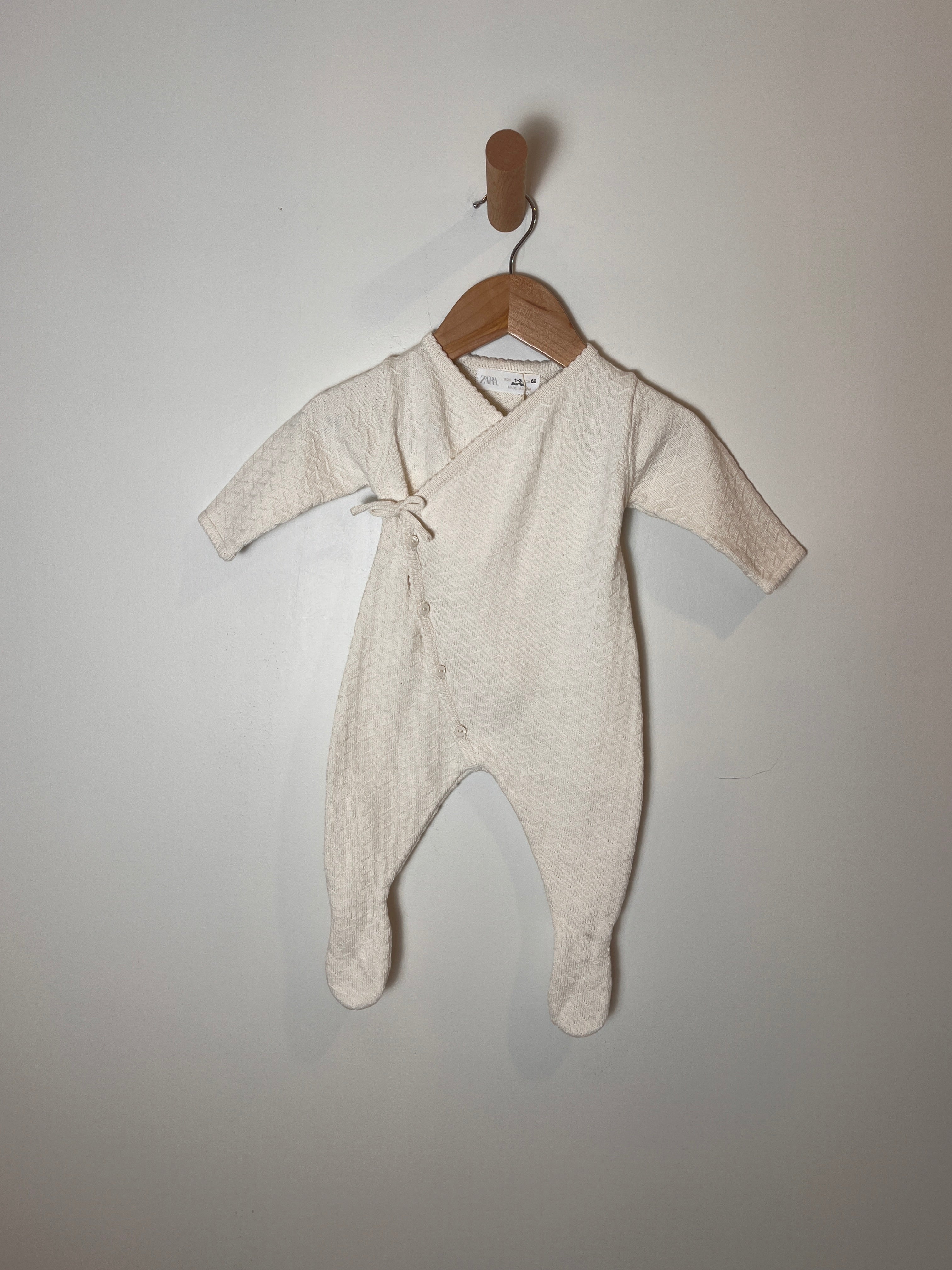 Thrifted | Knitted Ivory Romper with Cross Over Button Front 1-3M by Zara