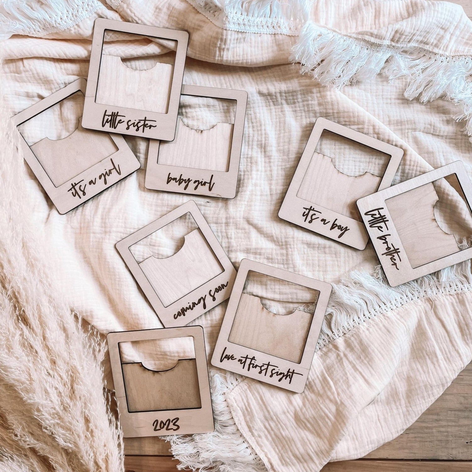 Adorable way to proudly display your baby's first precious photo: their ultrasound! Keep for yourself or gift to friends and family. Also makes a cute way to announce your pregnancy.